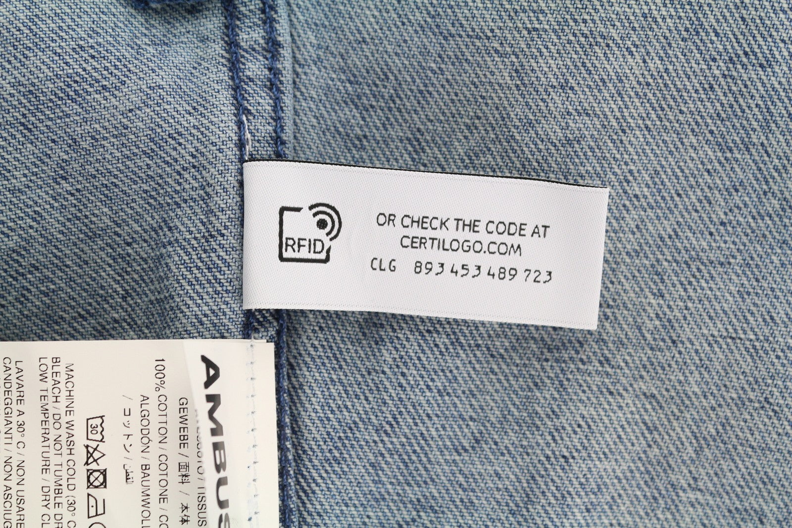 AMBUSH Men Oversized Denim Jeans Jacket L Blue Patch Pockets Zipper