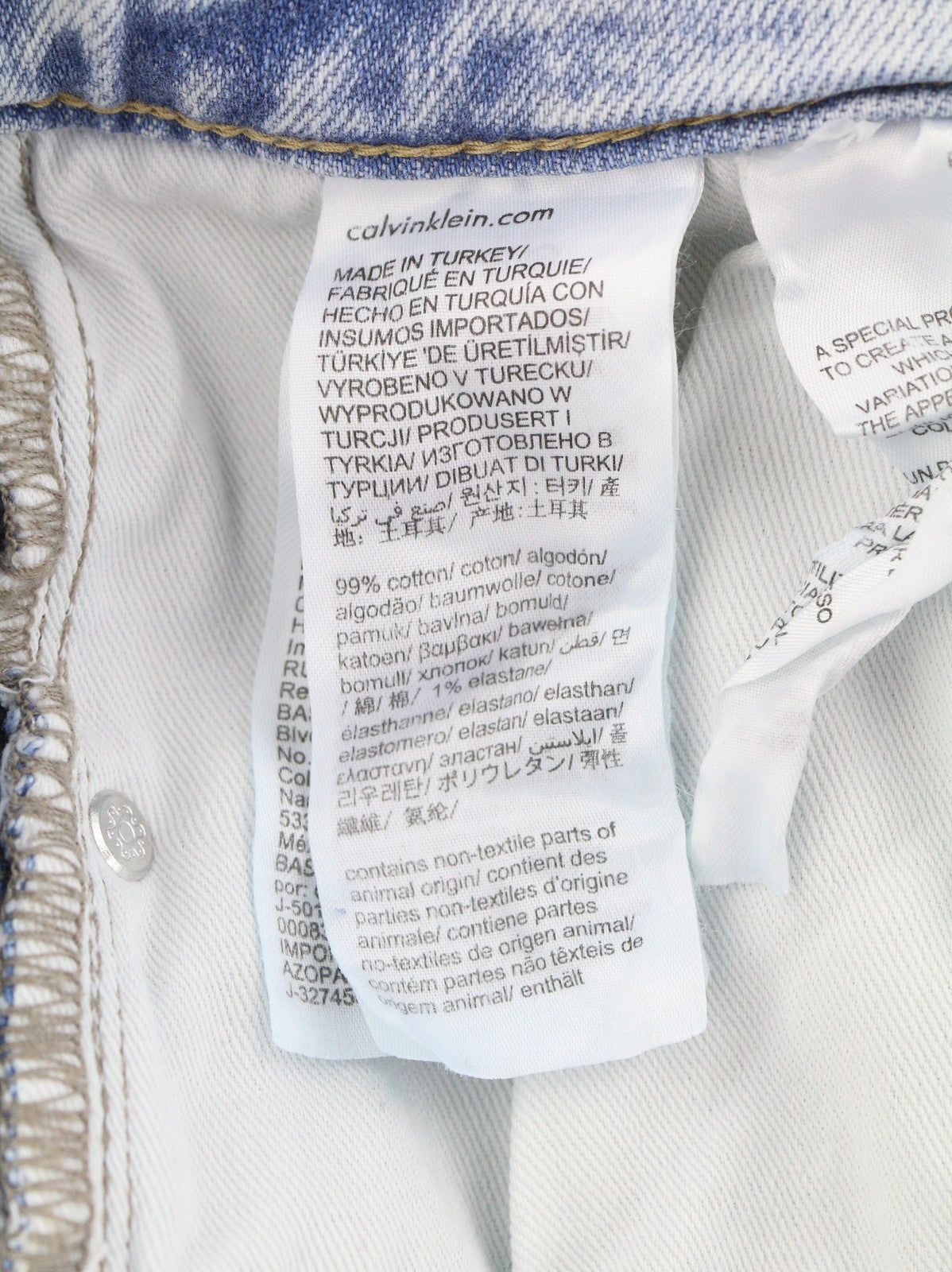 CALVIN KLEIN Slim Straight Men Jeans W34/L32 Blue Faded Whiskers Zip Fly Denim