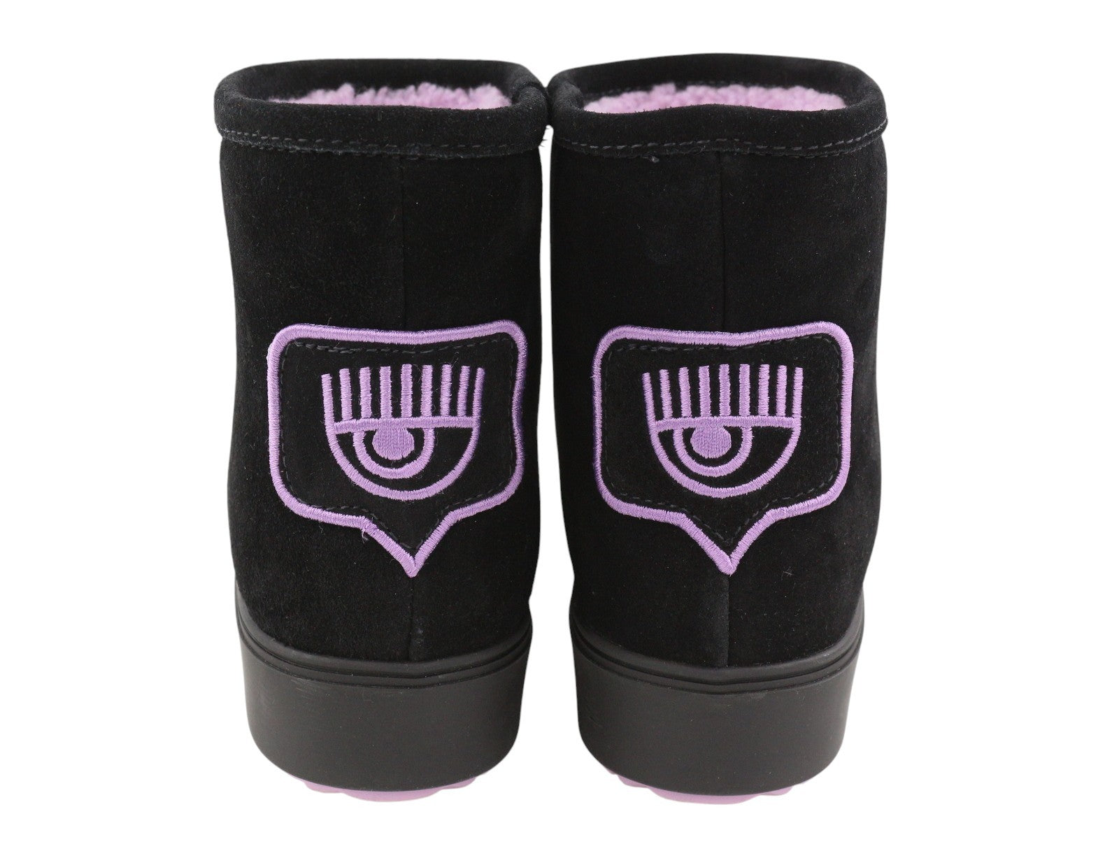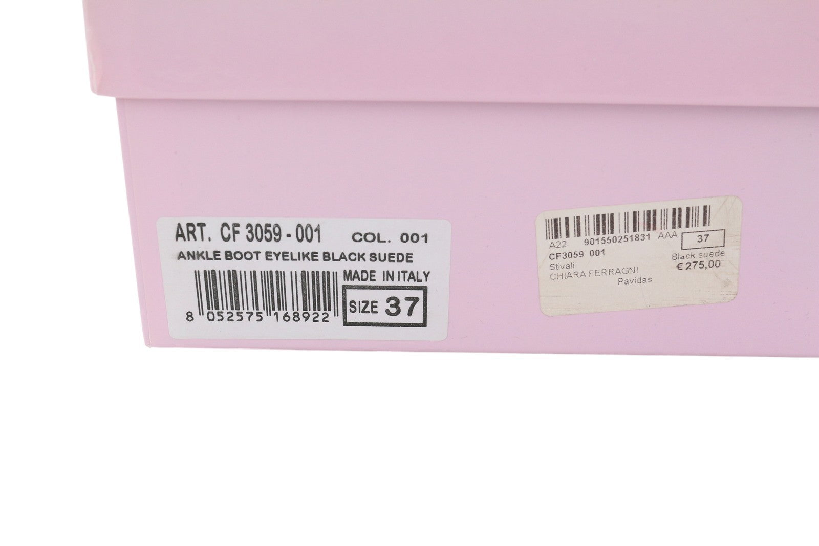 CHIARA FERRAGNI Ankle Eyelike Black Suede Women Boots EU37 Fleece Inside RRP275
