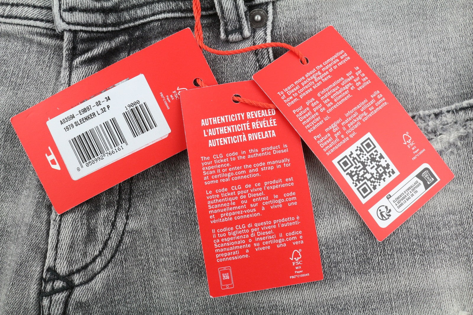 DIESEL 1979 Sleenker E9B97 Men's W34/L32 Skinny Grey Denim Low Waist RRP250