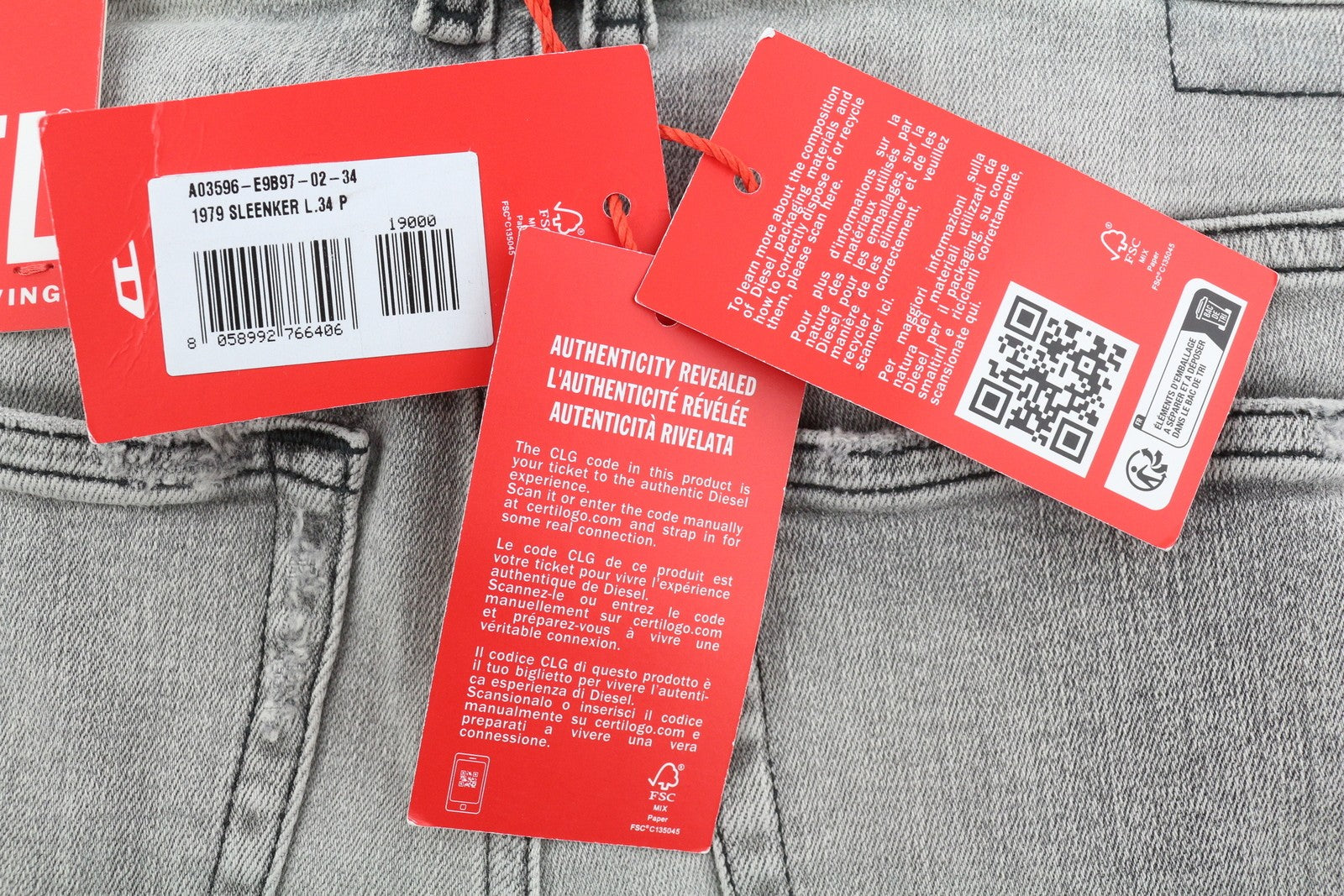 DIESEL 1979 Sleenker E9B97 Men's W34/L34 Skinny Grey Low Waist Faded RRP250