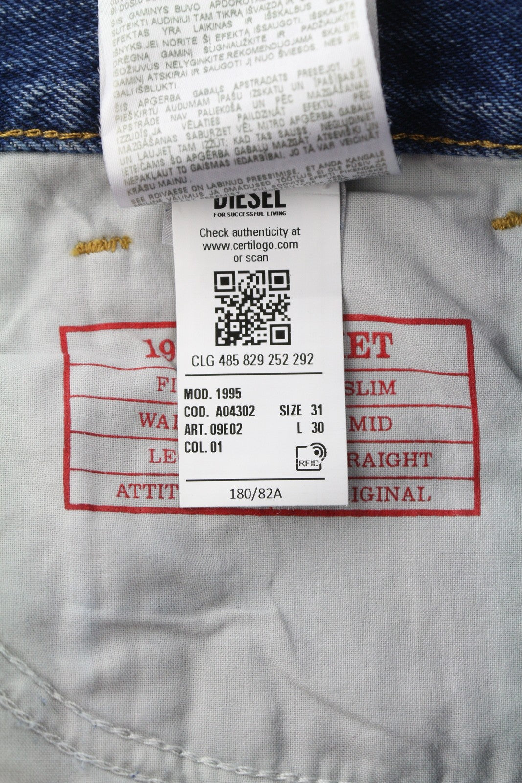 DIESEL 1995 09E02 Men Jeans W31/L30 Blue Ripped Distress Slim Straight RRP375