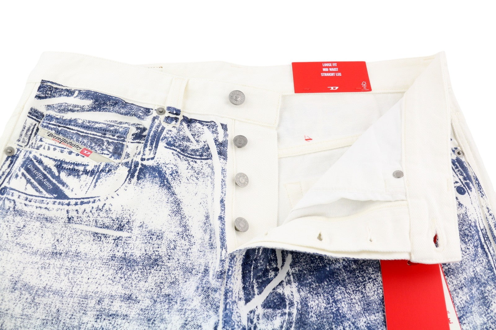 DIESEL 2001 D-Macro 09I73 Men Jeans W32 Loose Straight Button Faded Blue RRP375