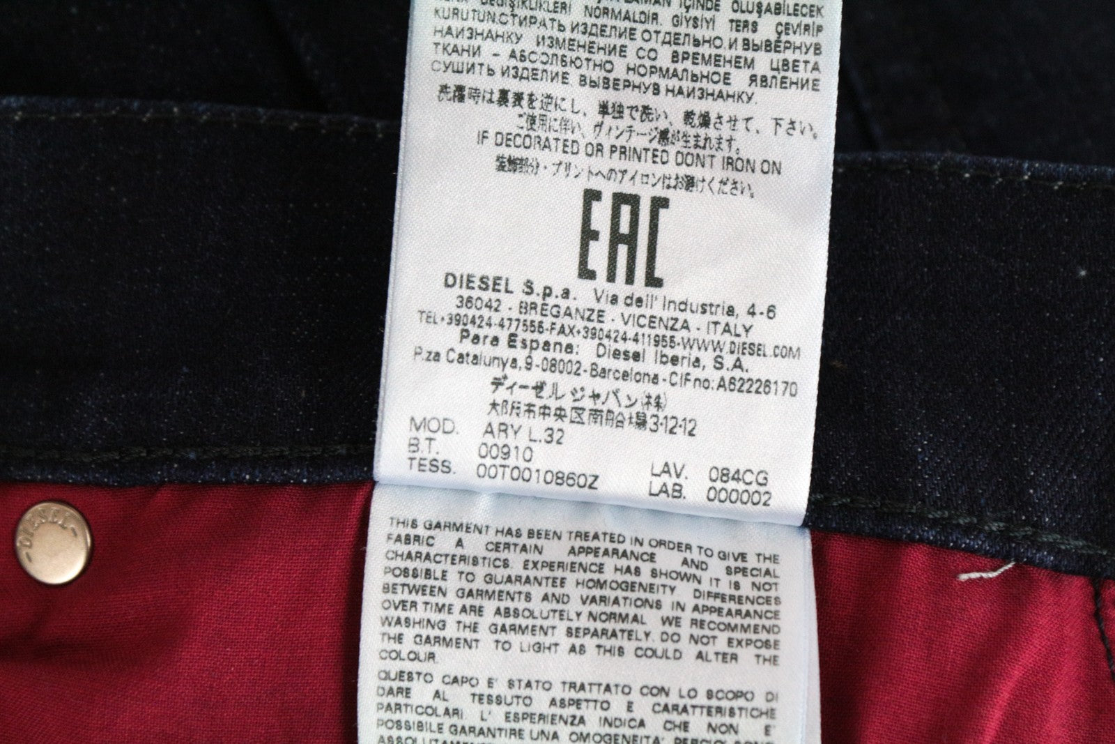 DIESEL Ary 084CG Women's W30/L32 Straight Stretch Blue Cotton Jeans