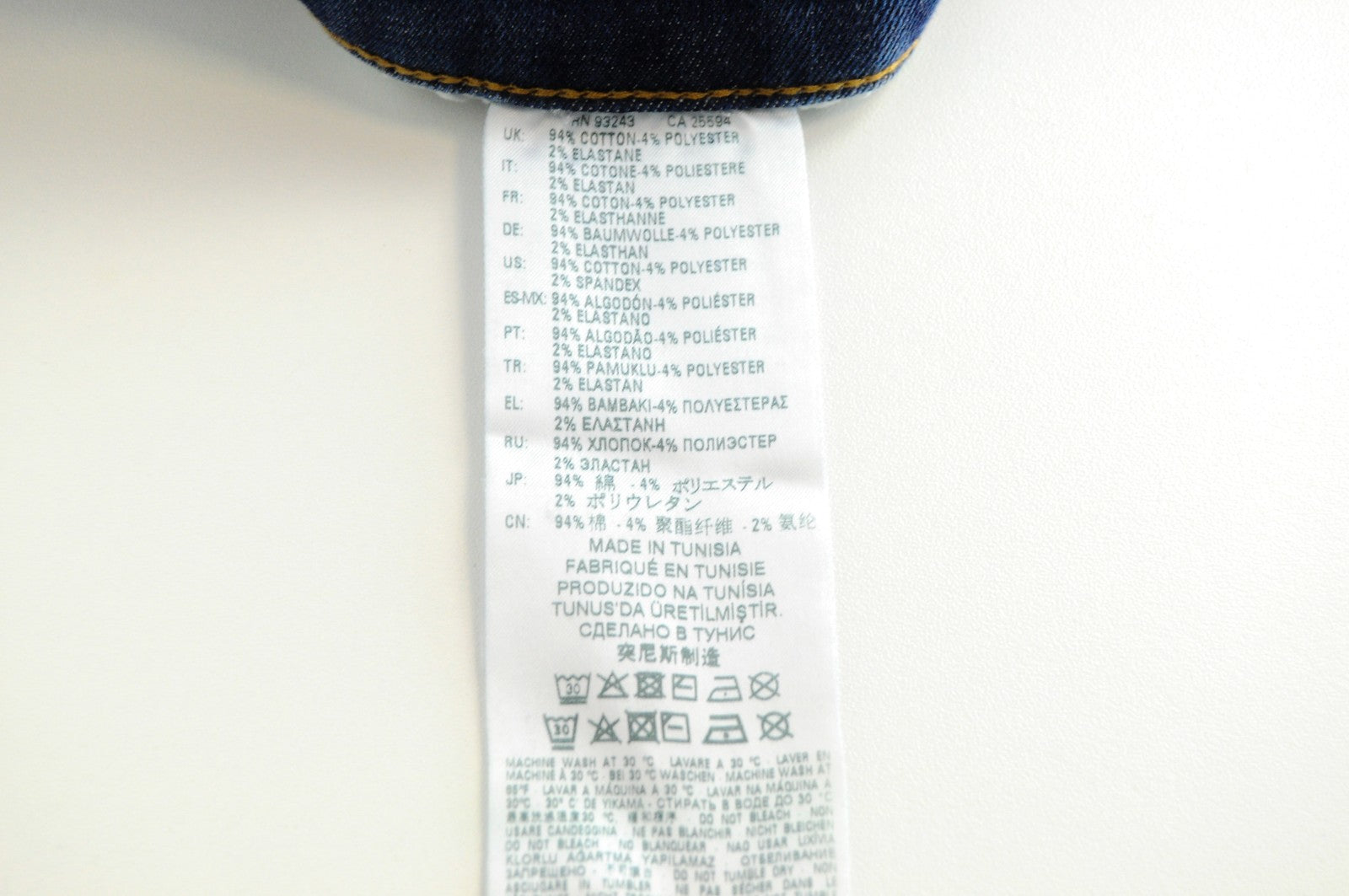 Material : 94%Cotton,4%Polyester,2%Elastane