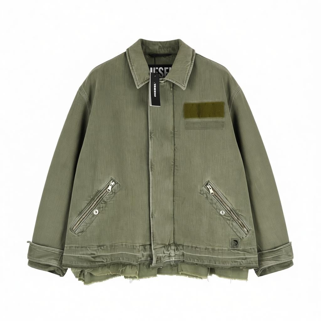 DIESEL J-Georg Men Jacket L Military Denim Jacket Distressed Lightweight RRP395