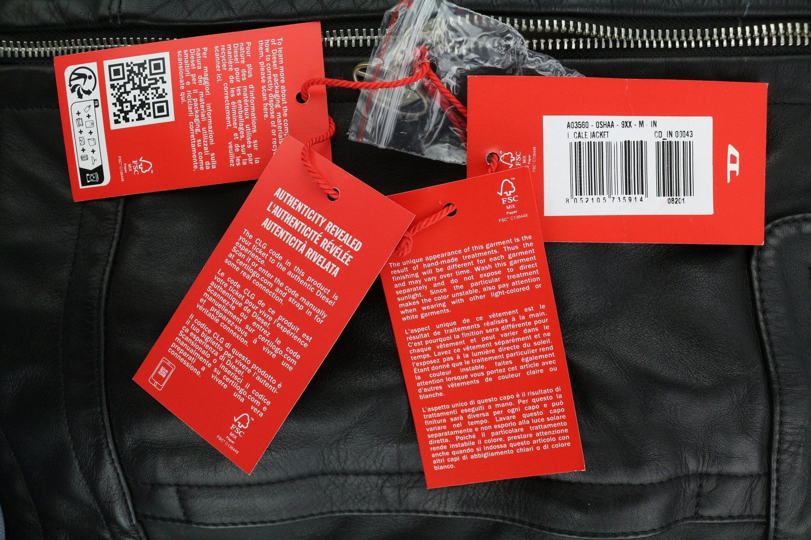 DIESEL L-Cale Men's Jacket M Black Cowhide Leather Polo Lightweight RRP650