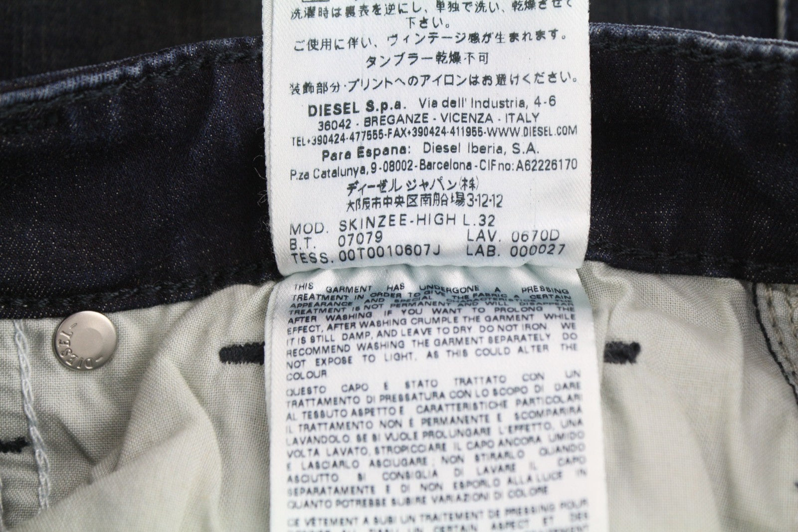 DIESEL Skinzee-High 0670D Women's Jeans W24/L32 Super Slim Skinny High Waist