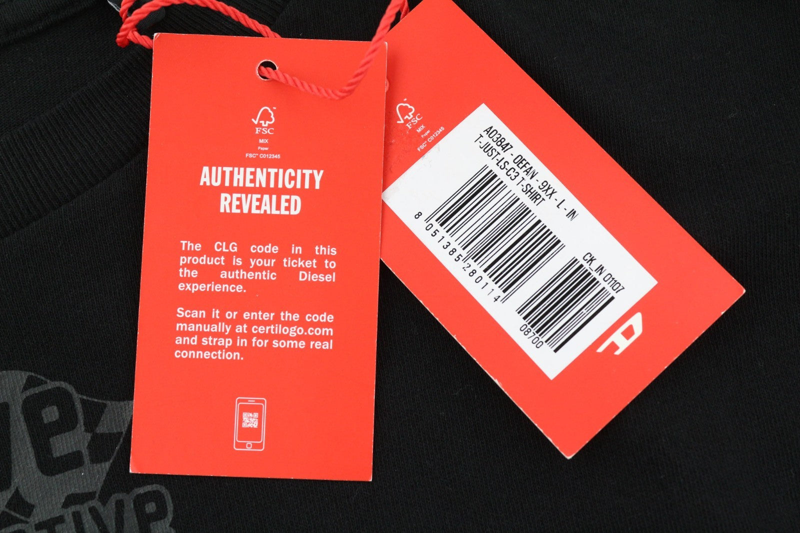 DIESEL T-Just-LS-C3 Men's Sweatshirt L Black Logo Crew Pullover Long Sleeve