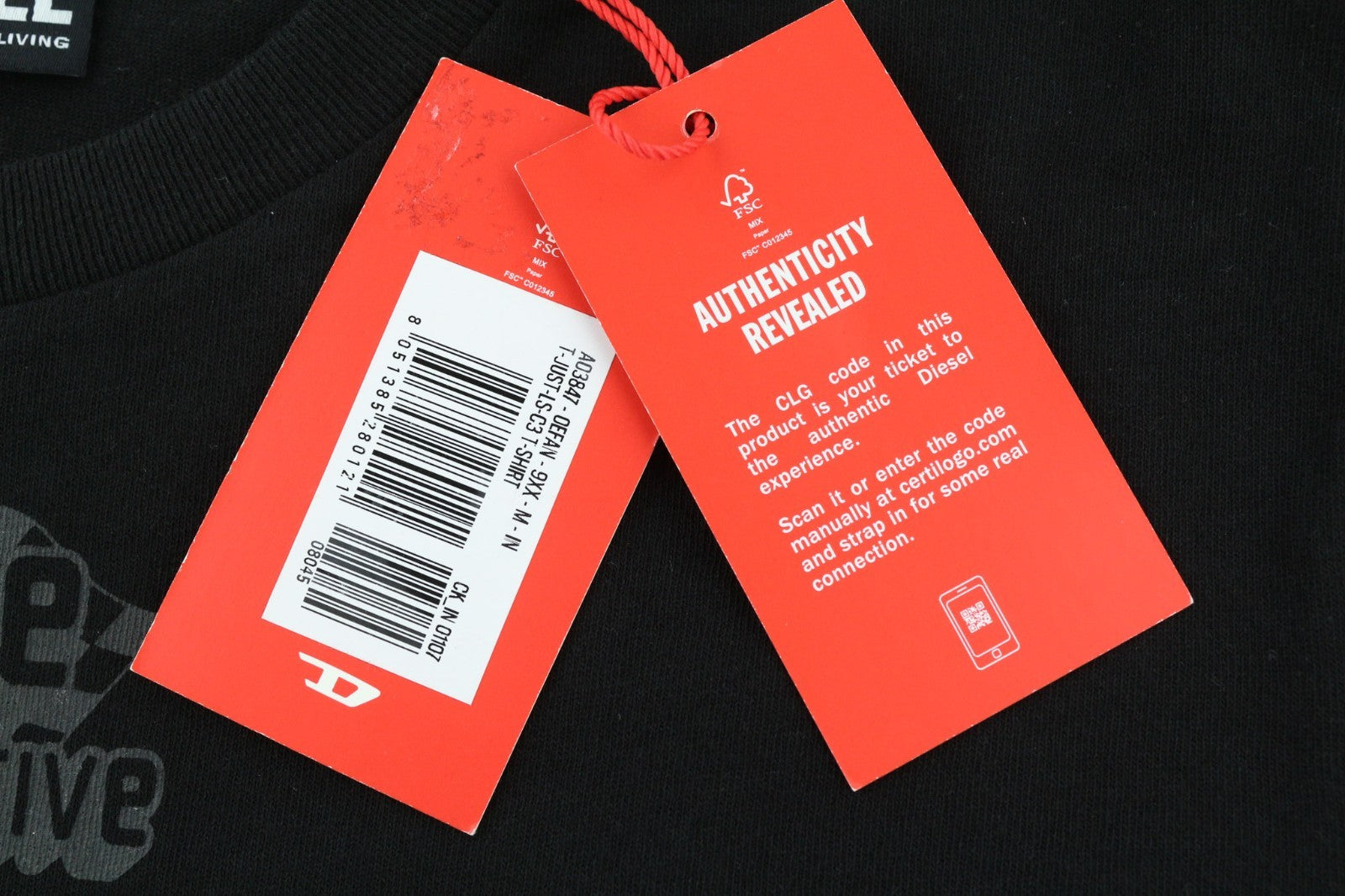 DIESEL T-Just-LS-C3 Men's Sweatshirt M Black Crew Pullover Logo Long Sleeve