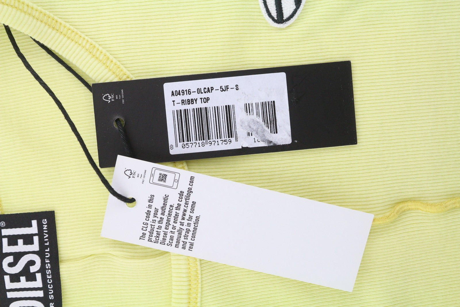 DIESEL T-Ribby Women's T-Shirt S Yellow Cropped Stretch Short Sleeve