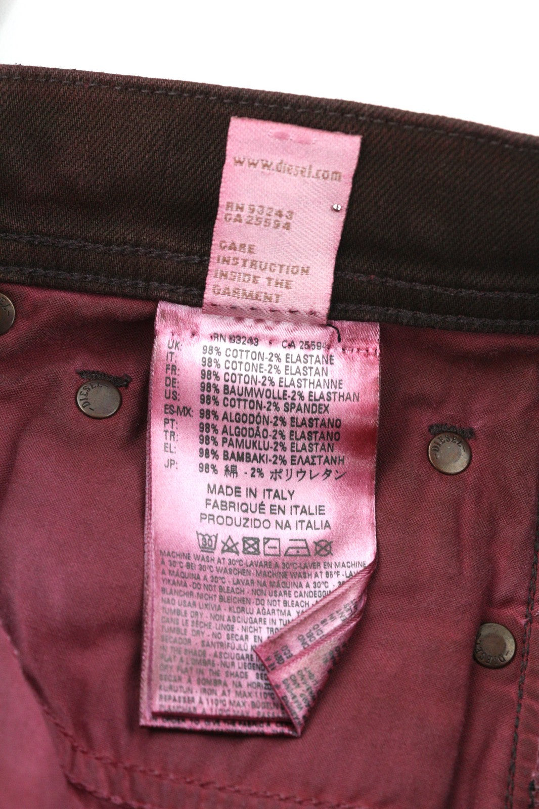 DIESEL Tepphar 0858X Men's Jeans W26 Slim Carrot Burgundy Buttoned Logo
