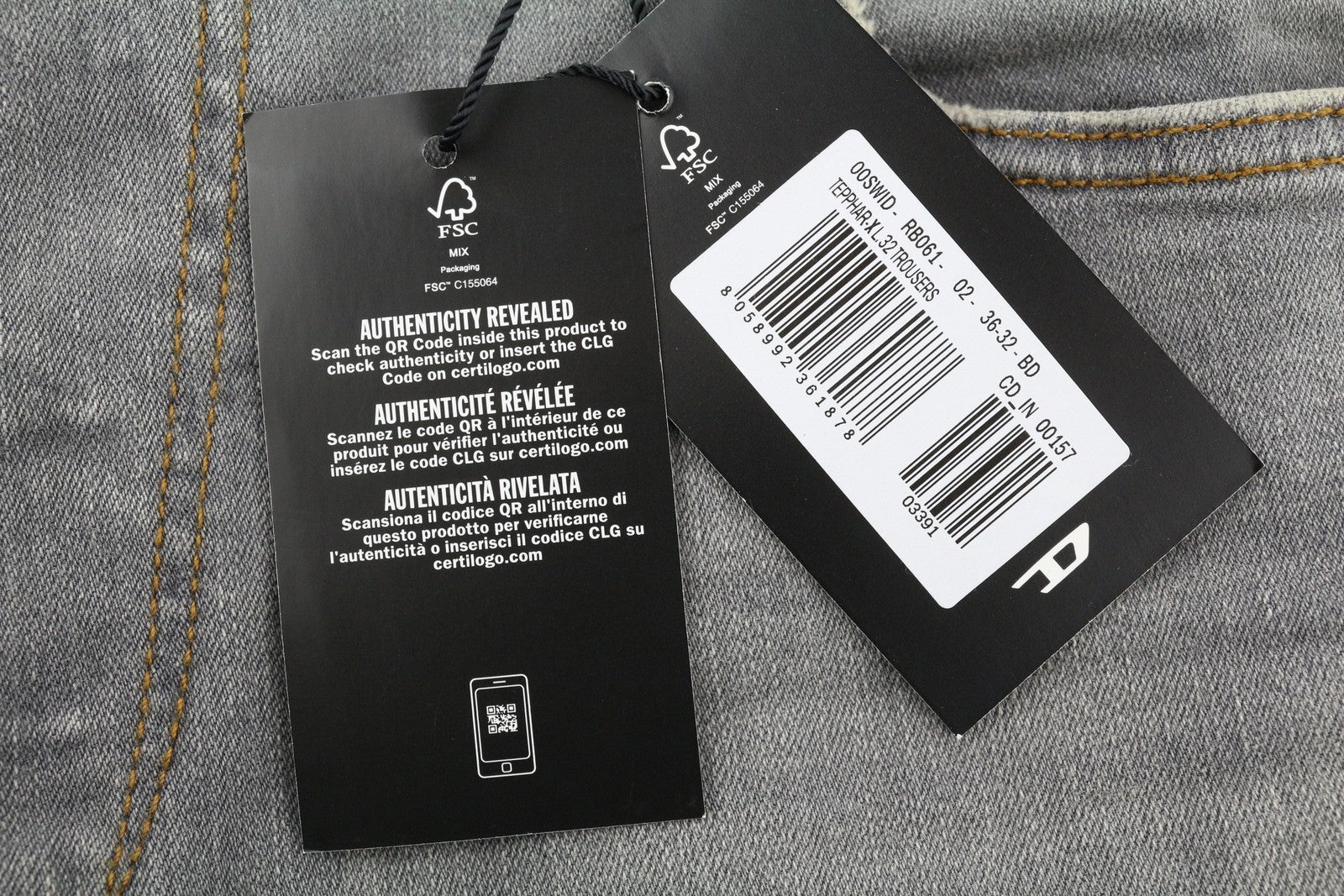 DIESEL Tepphar RB061 Men's W36/L32 Slim Faded Grey Button Fly Denim RRP175