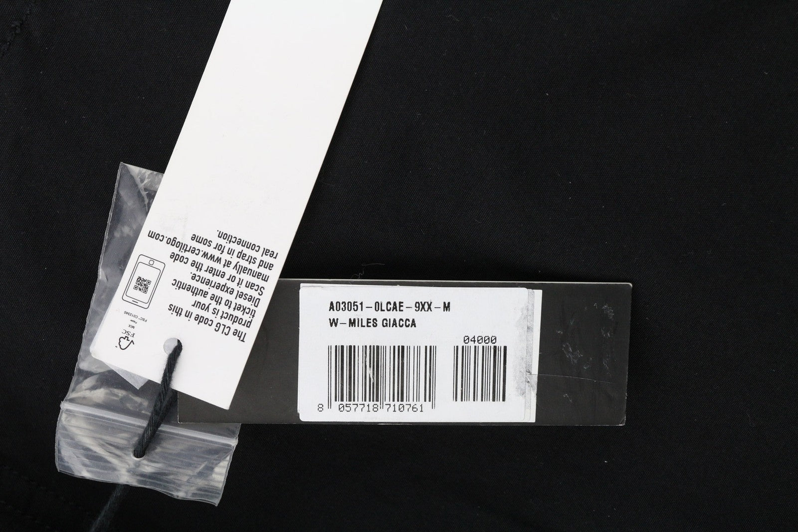 DIESEL W-Miles Men's Jacket M Black Hooded Parka Zip Lightweight Unlined RRP475