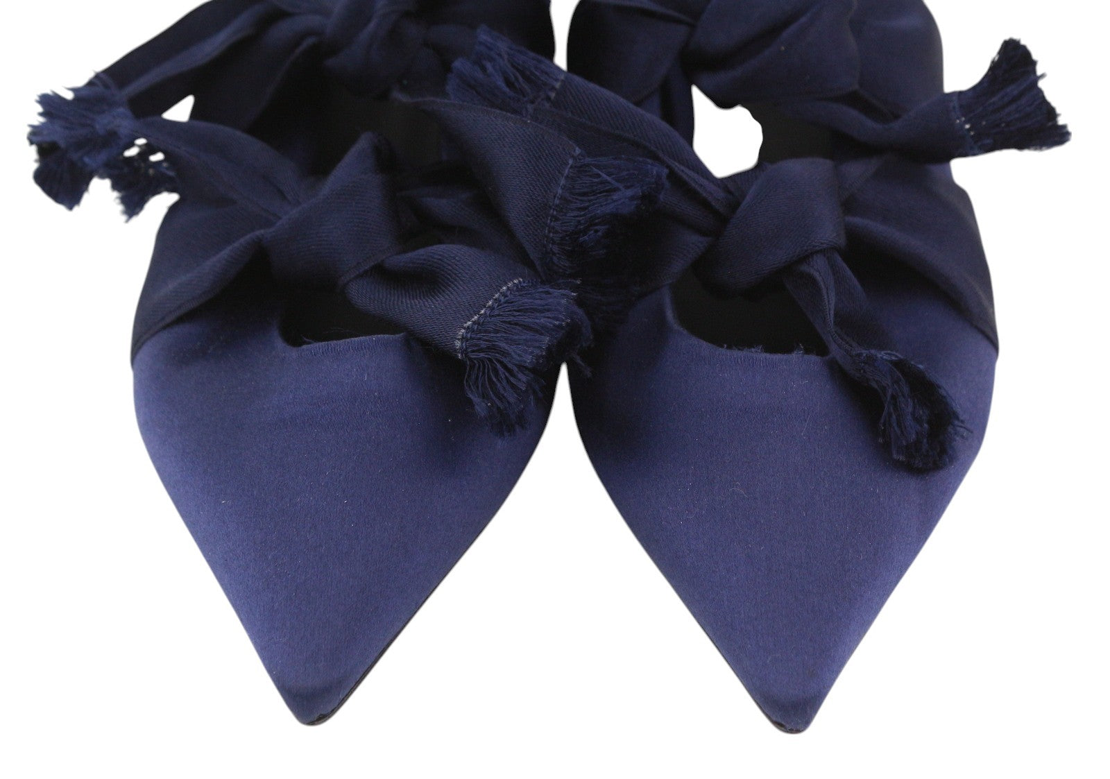 EMPORIO ARMANI Women Flats EU37 Blue Satin Pointed Ballerina Strap Slip On
