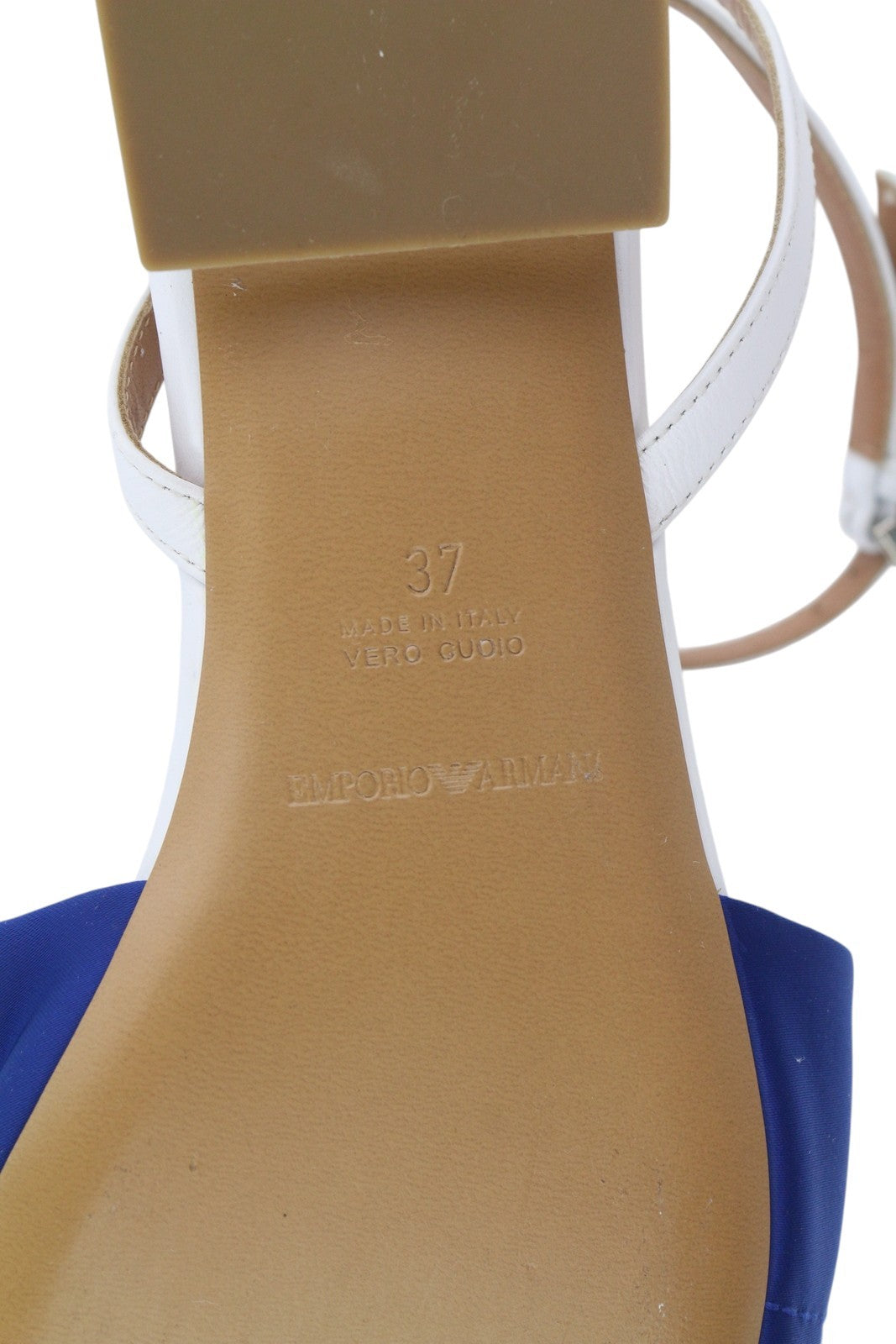 EMPORIO ARMANI Women Sandals EU37 Leather Flat Quilted Square Toe Buckle