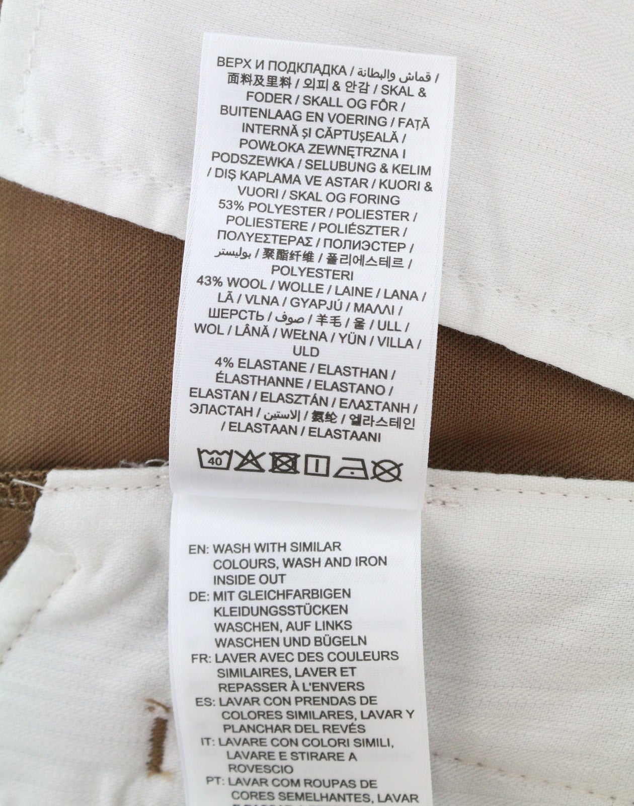 Material : 53% Polyester, 43% Wool, 4% Elastane