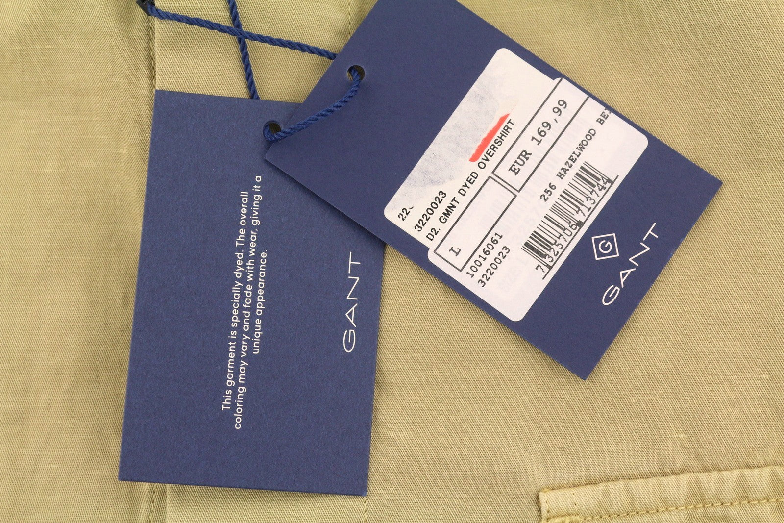 GANT GMNT Dyed Overshirt Men Jacket L Beige Linen Blend Button-Up Thin RRP170