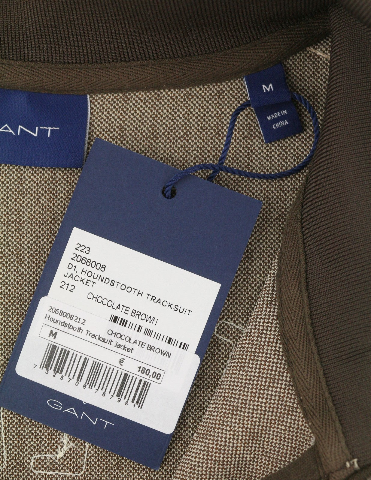 GANT Houndstooth Men Sweatshirt L Chocolate Brown High Neck Full Zip RRP180