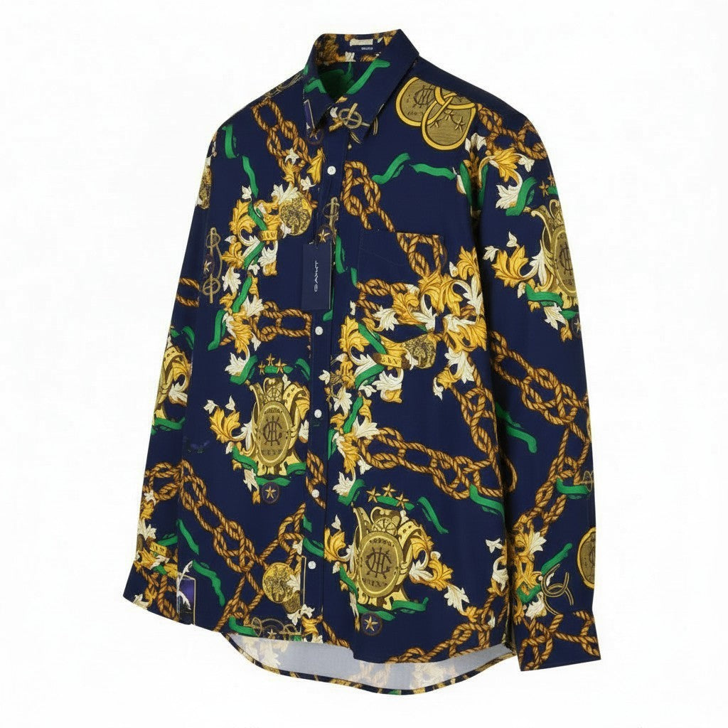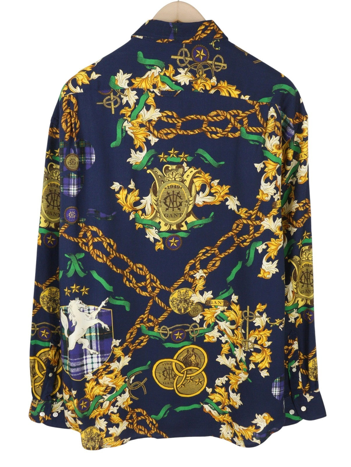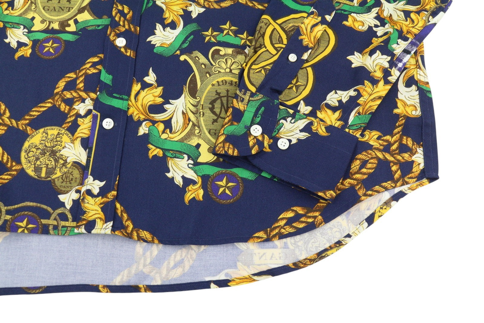 GANT Rel Chain Print Lyocell Town Men Shirt L Evening Blue Relaxed Fit Casual