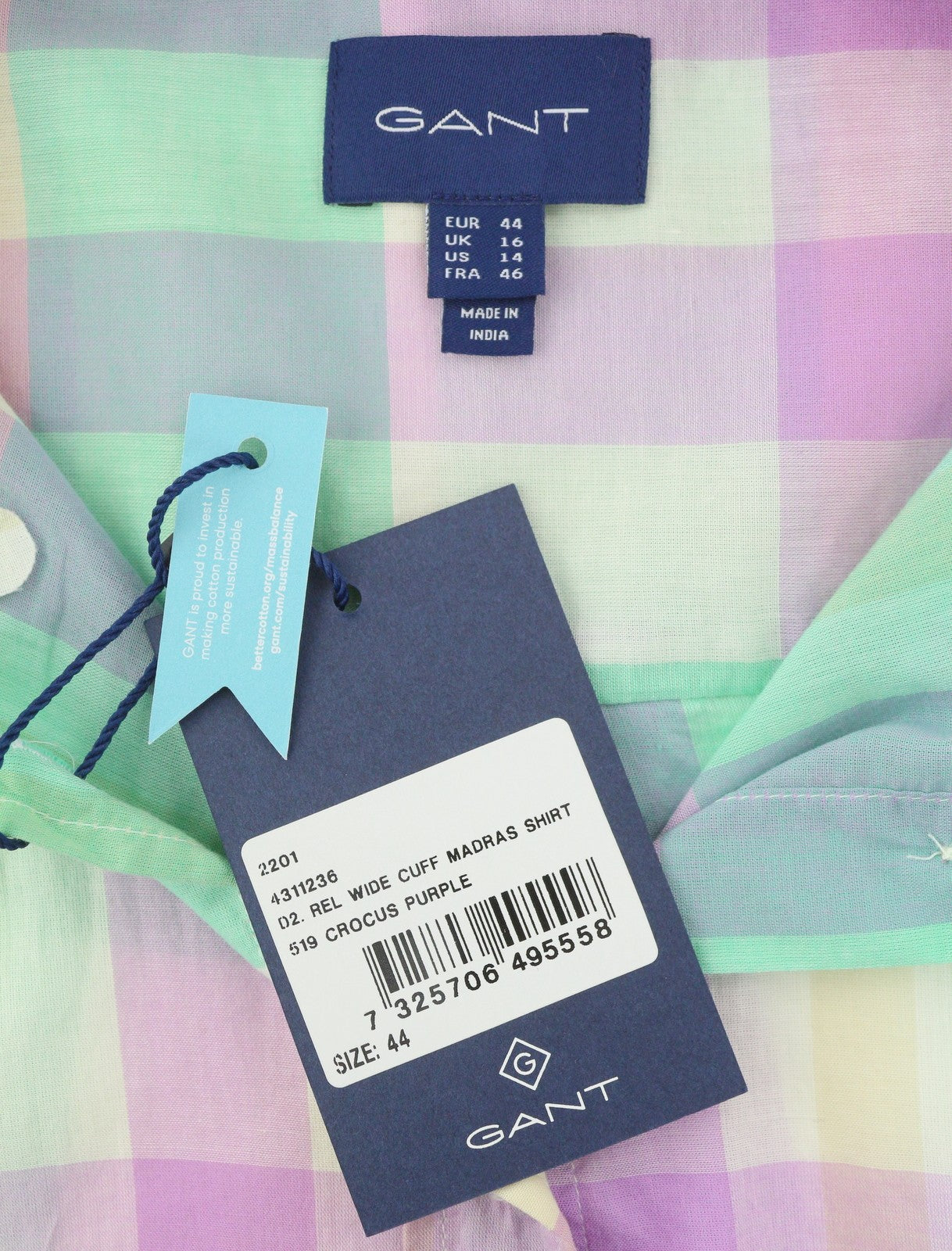GANT Rel Wide Cuff Madras Women Shirt EU44 Crocus Purple Button-Up Oversized