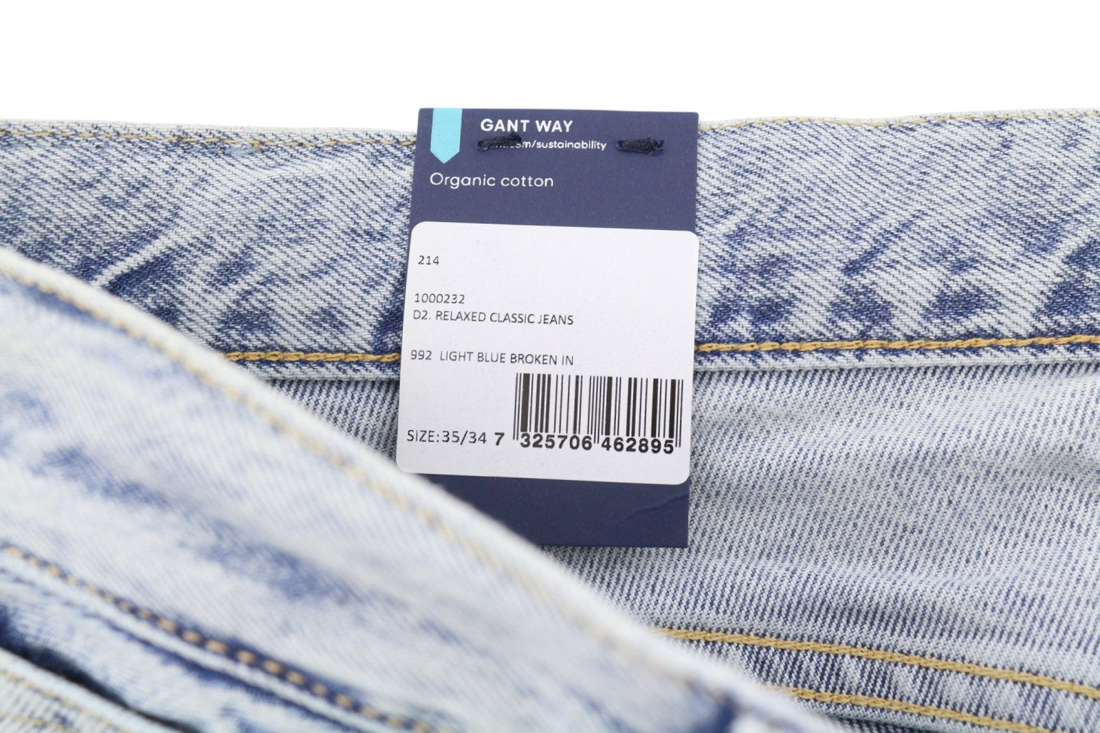 GANT Relaxed Classic Men Jeans W35/L34 Light Blue Broken In Faded Tapered Fit
