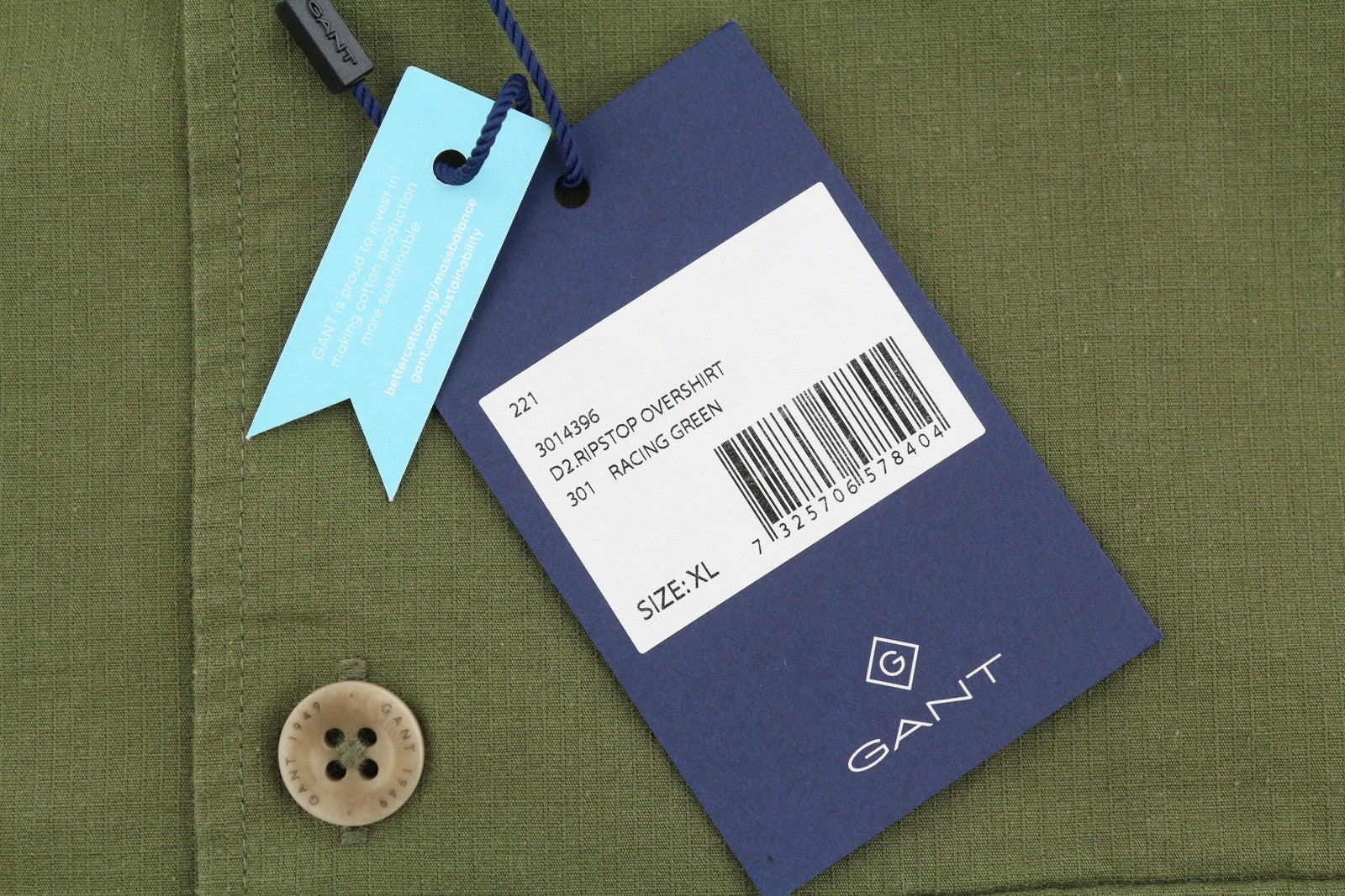 GANT Ripstop Overshirt Men Jacket XL Racing Green Button-Up Patch Pocket Thin