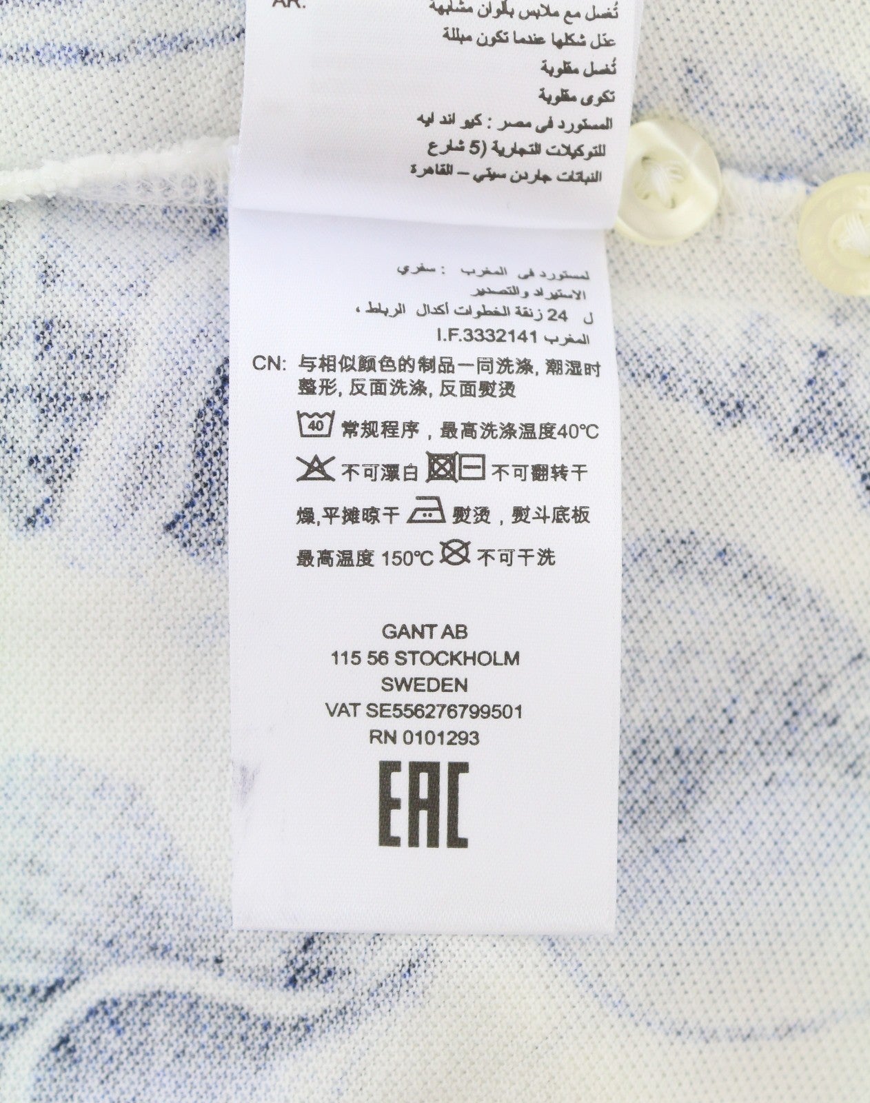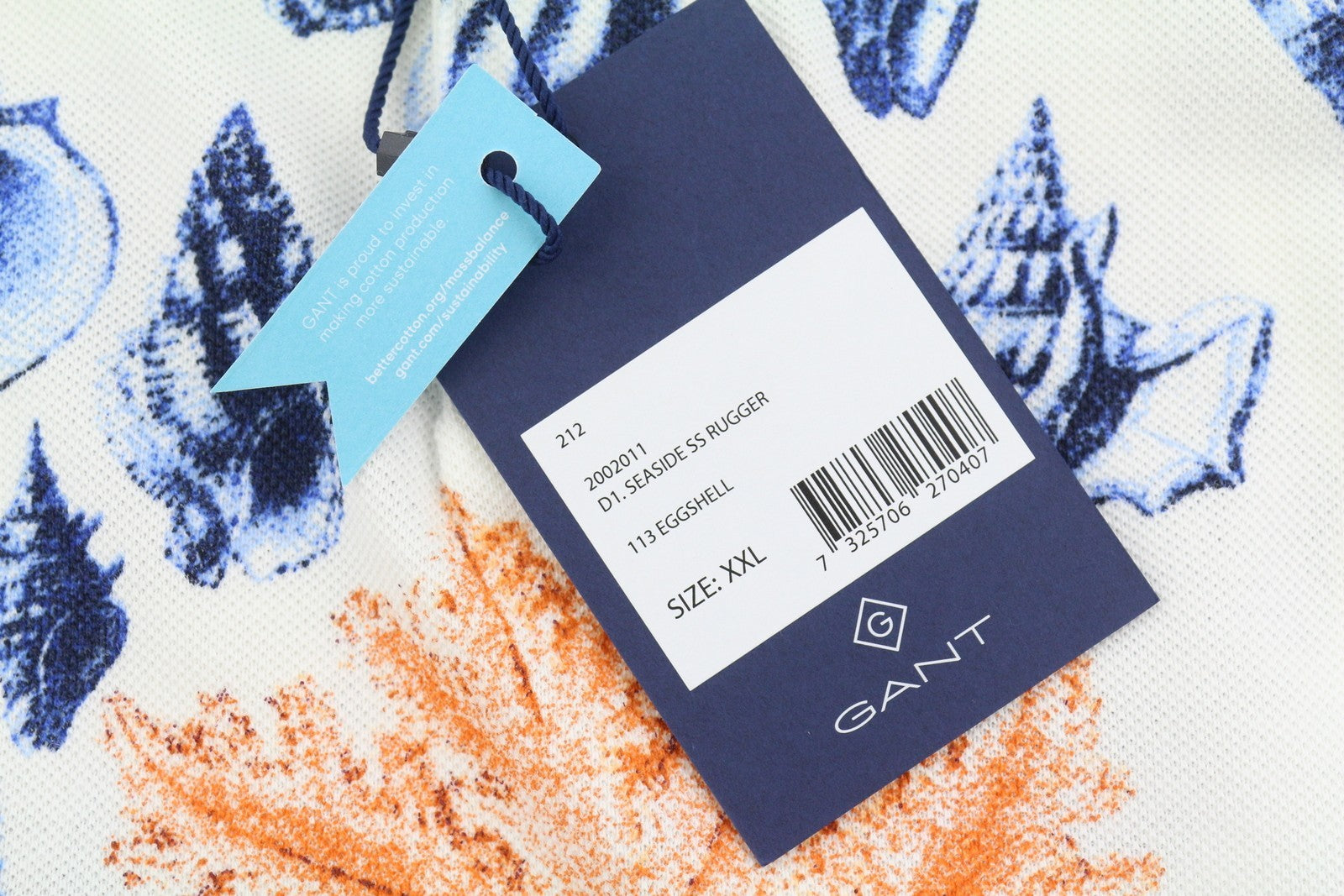 GANT Seaside SS Rugger Men Polos 2XL Eggshell Patterned Cotton Short Sleeve