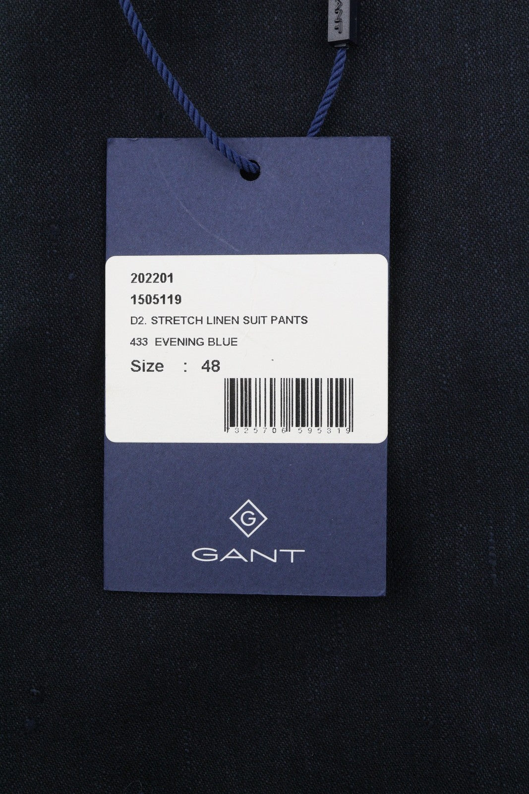 GANT Stretch Linen Men Trousers EU48 Evening Blue Slim Fit Flat Front Dark