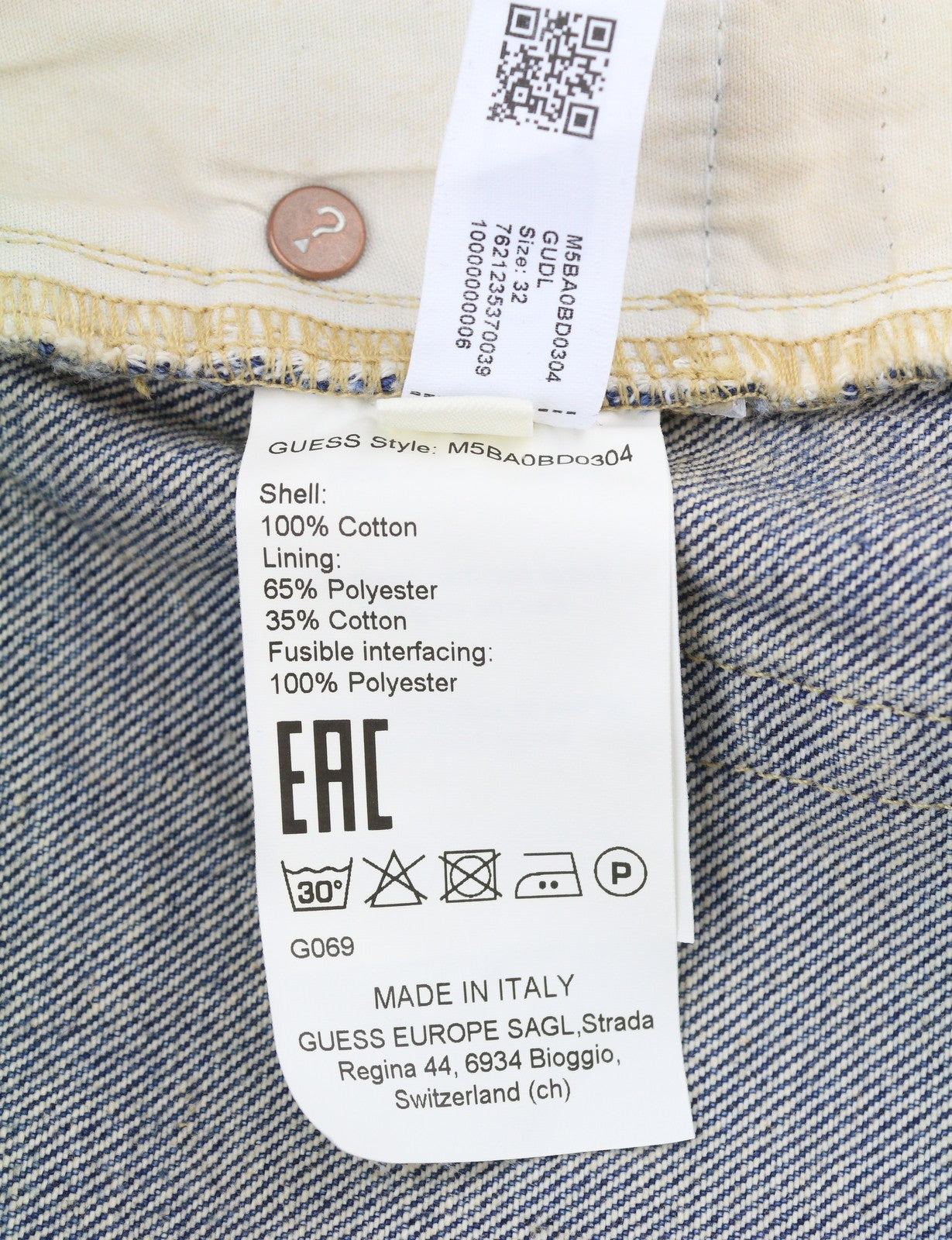 GUESS USA Straight Men Jeans W32 Blue Whiskers Faded Button Fly Denim