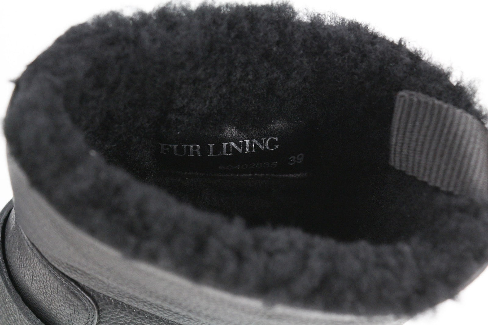 HUGO BOSS Lia Biker-Fur Women's Boots EU39 Black Leather Real Fur Buckled