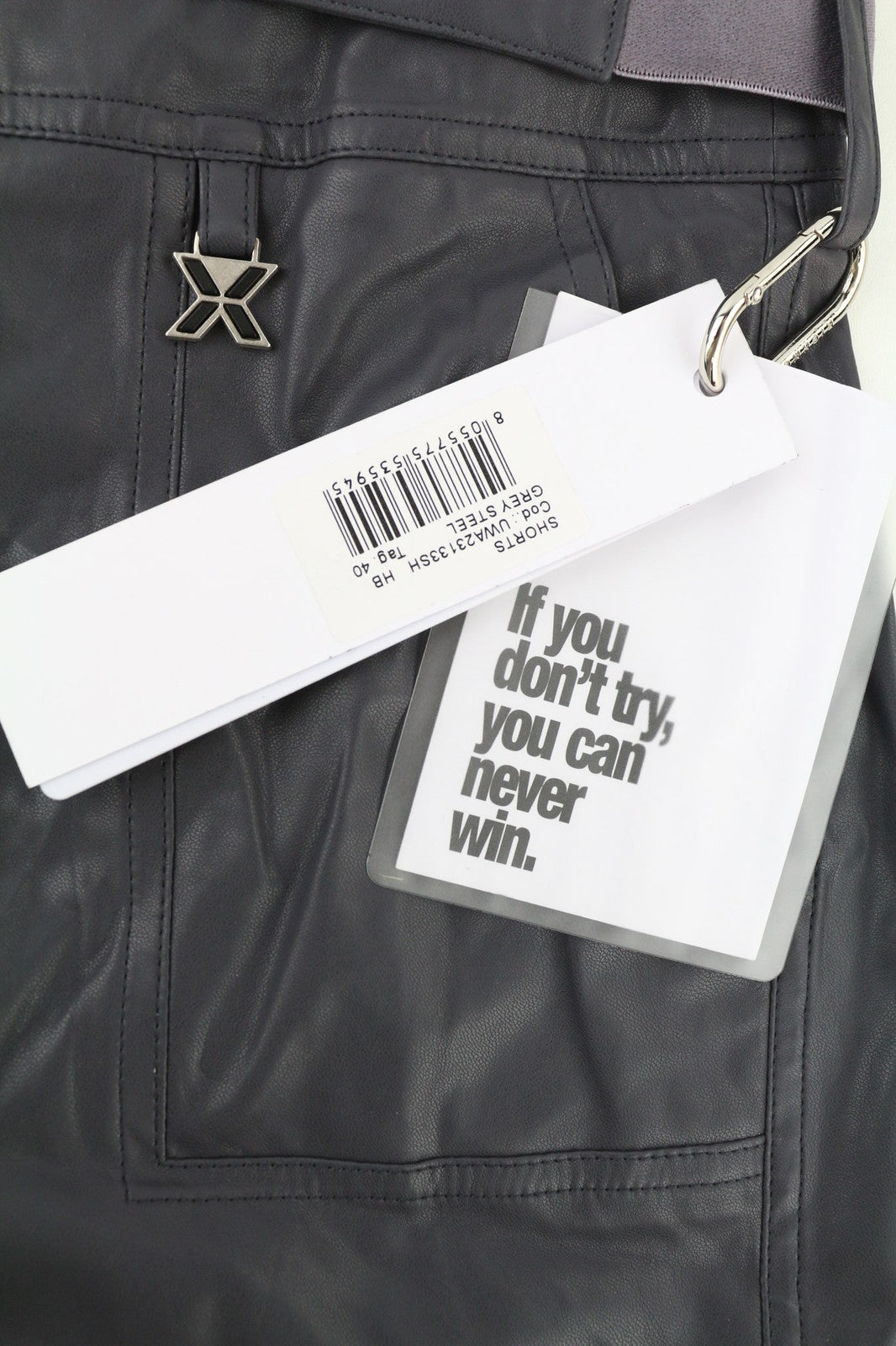 JOHN RICHMOND Women's Shorts S Grey Coated High Rise Belted Pockets