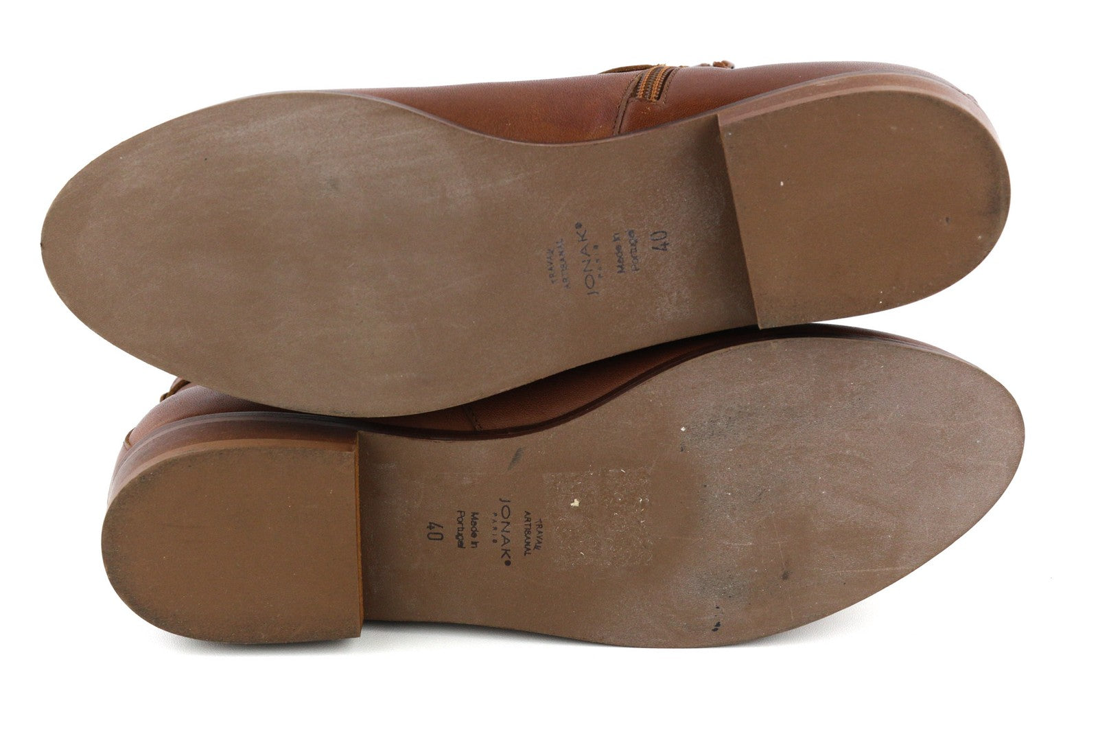 JONAK Women's Boots UK7.5 EU40 Brown Leather Almond Toe Ankle Zip Logo