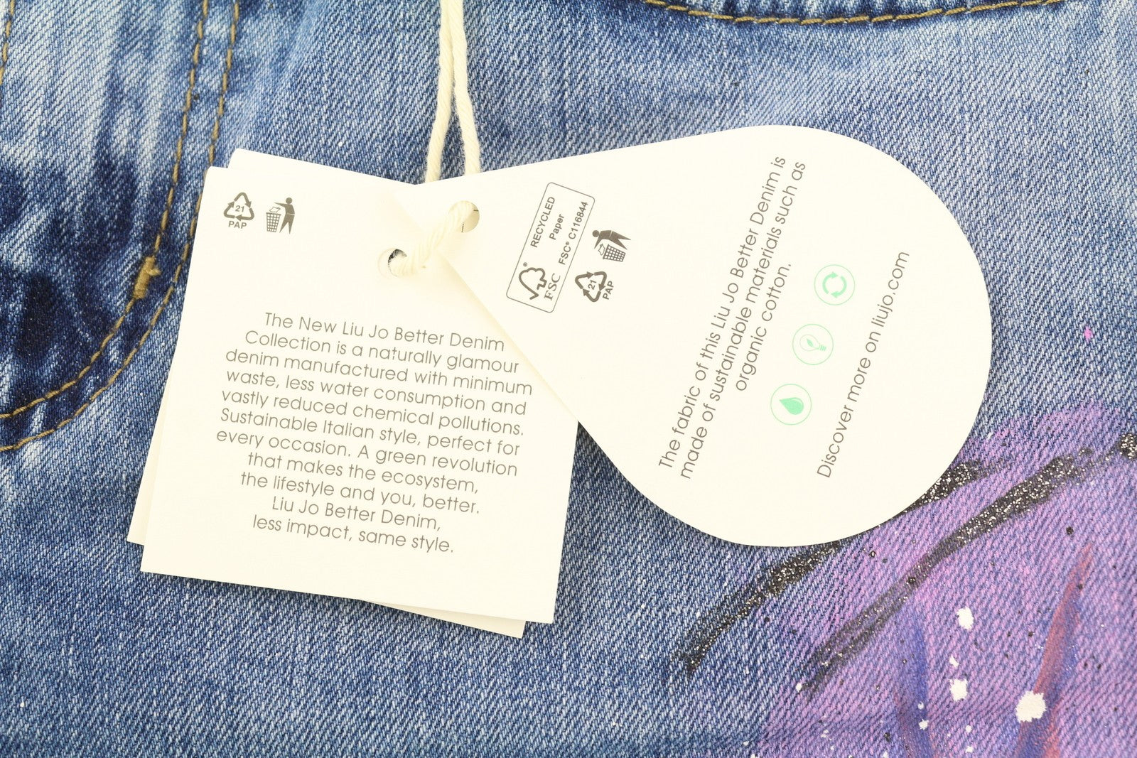 LIU JO Cute Women's Jeans W28 Blue Painted Pattern Skinny Fit Ankle