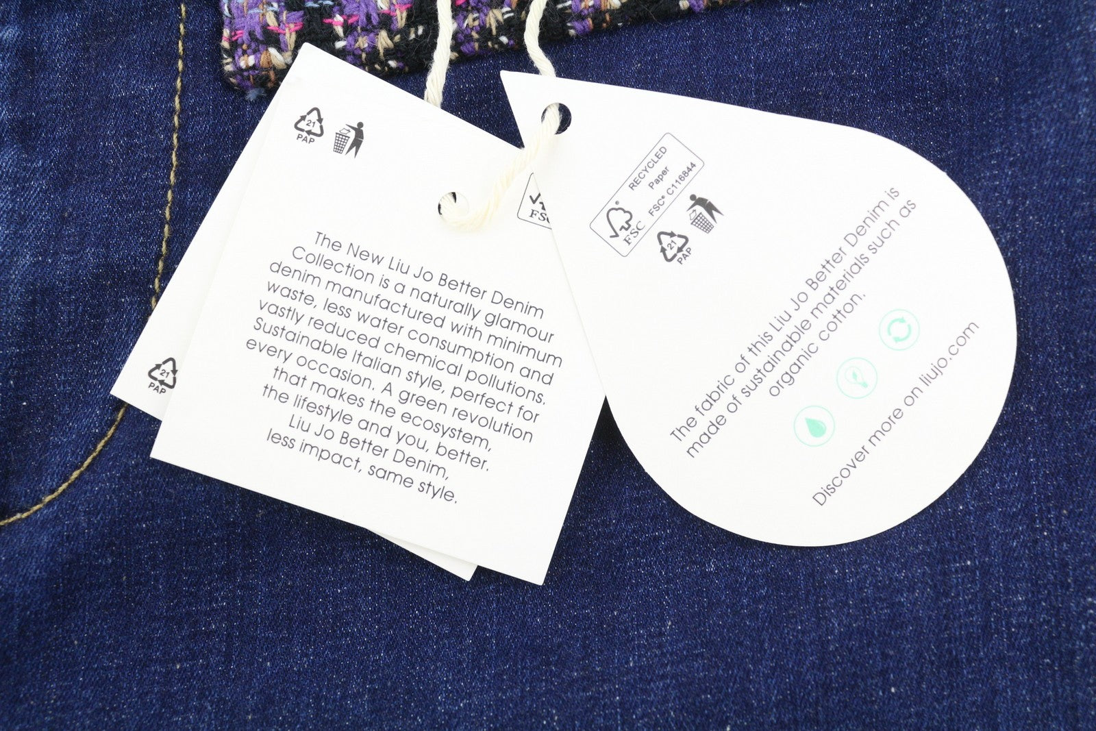 LIU JO Fringed Women Jeans 42 High Waist Flare Blue Denim Zip Fly Logo