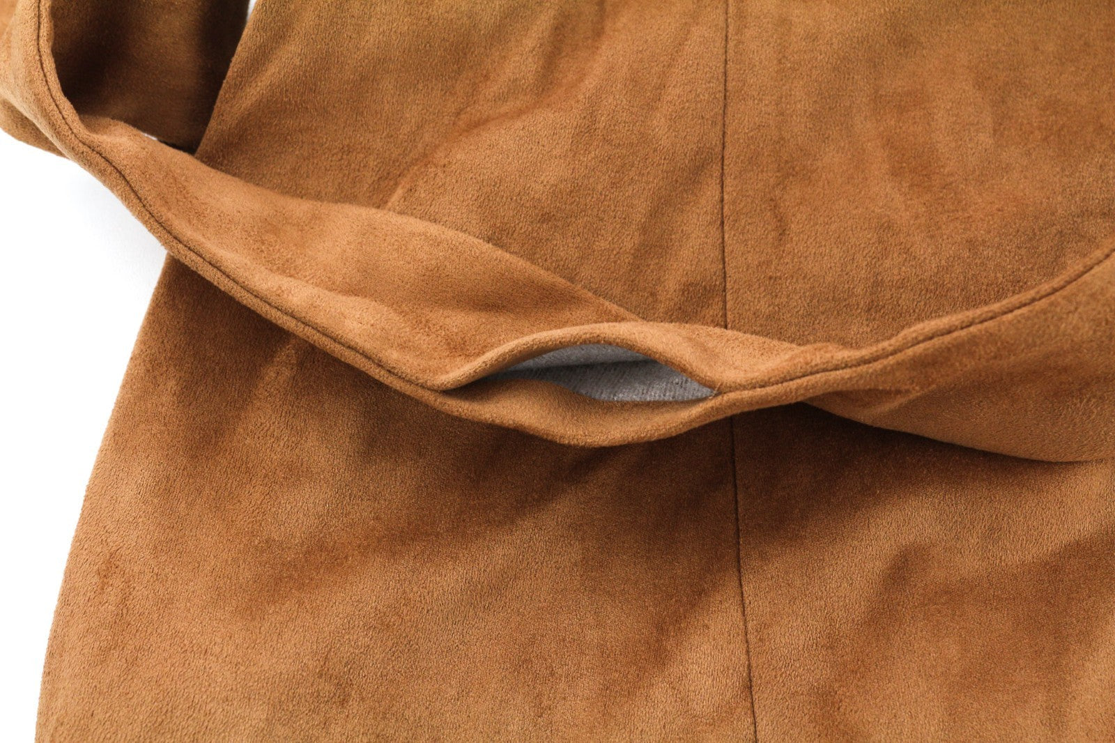 NIFE Women's M Brown Faux Suede Stretch Long Belted Double-Breasted Coat