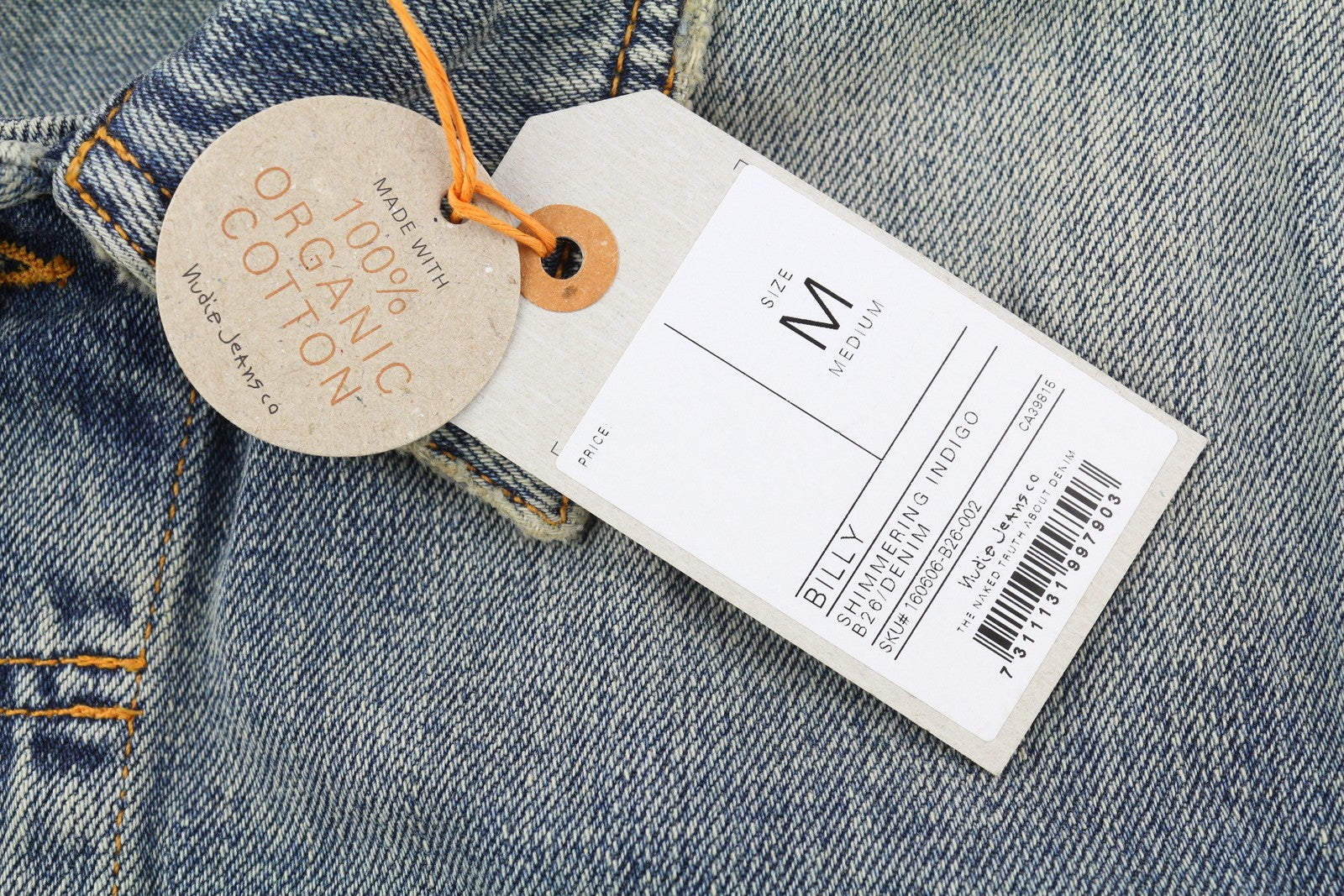 NUDIE JEANS Billy Men Jacket M Shimmering Indigo Button-Up Distress Faded Blue