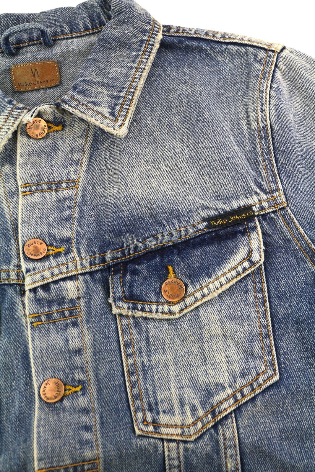 NUDIE JEANS Billy Men's S Shimmering Indigo Ripped Polo Collar Denim Coat