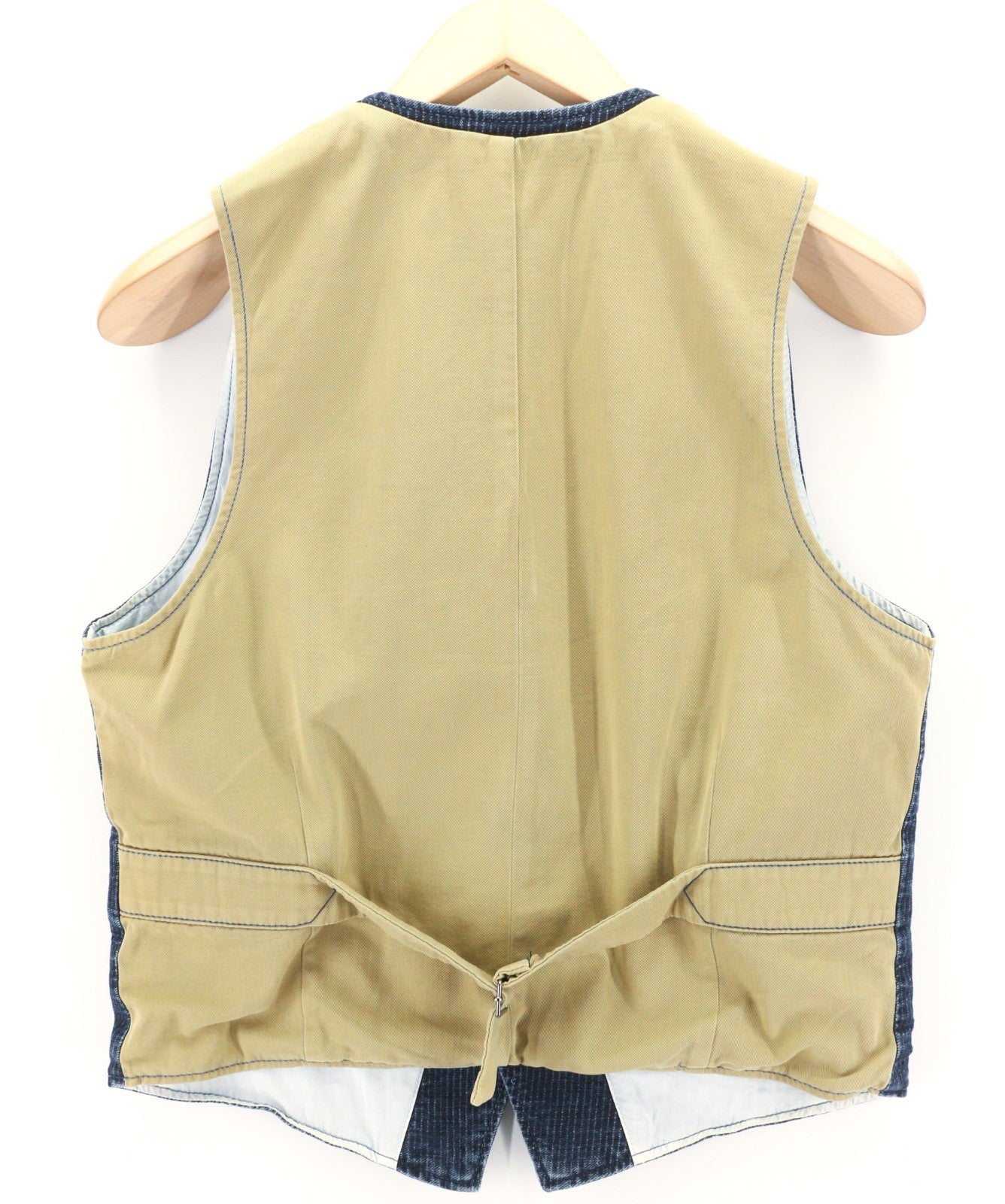 NUDIE JEANS Gustav Men's Vest M Worker Stripe Dark Blue Lined Button Logo