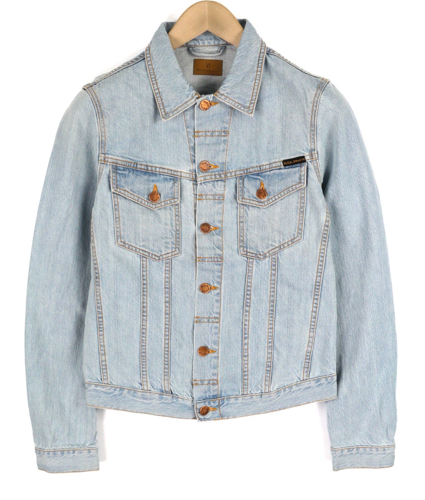 NUDIE JEANS Perry Men's S Organic Saltwater Shades Polo Button Blue Denim