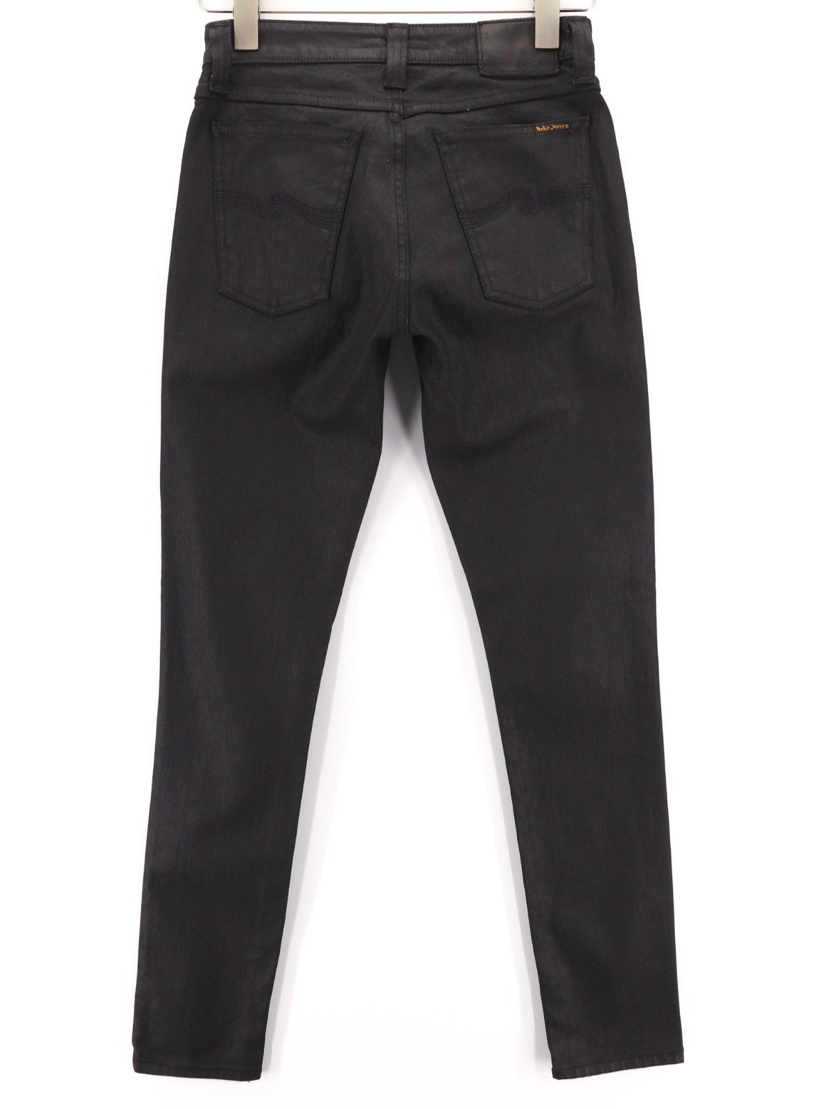 NUDIE JEANS Skinny Lin Men's Jeans W28/L32 Black In Black Coated Zip Organic