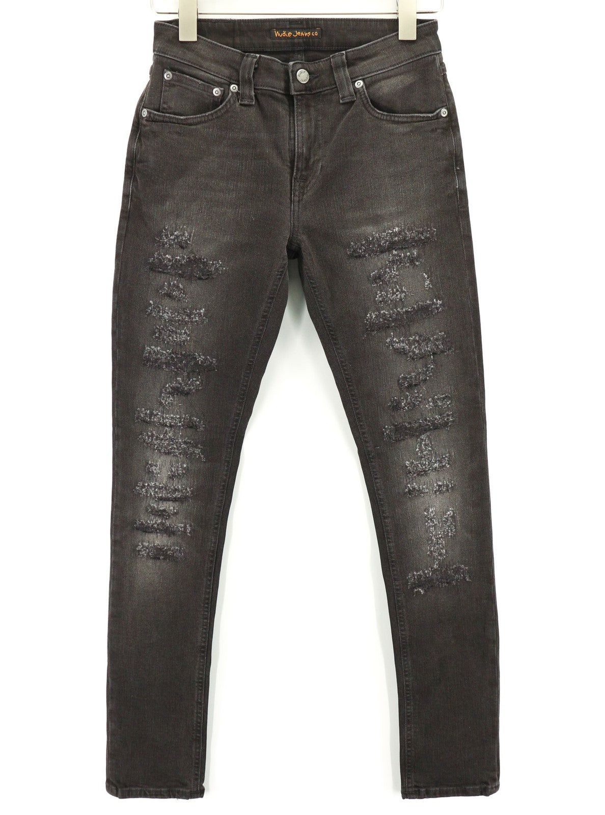 NUDIE JEANS Skinny Lin Used Black Men's Jeans W28/L32 Distressed Pockets Faded