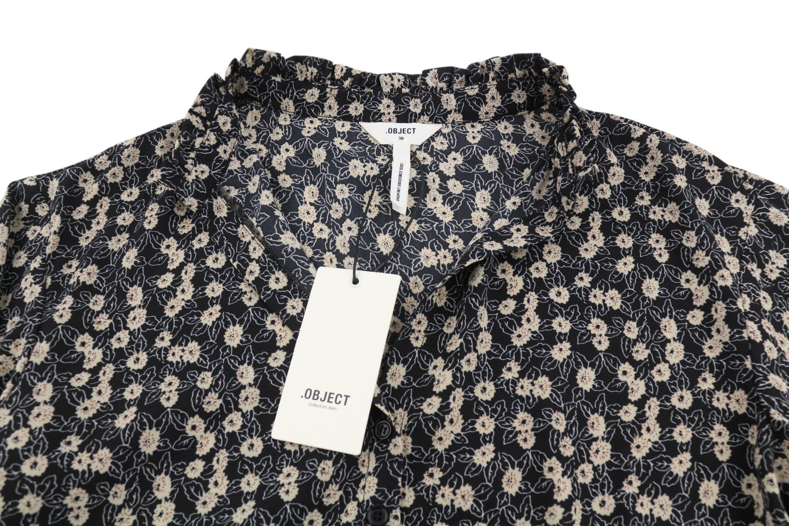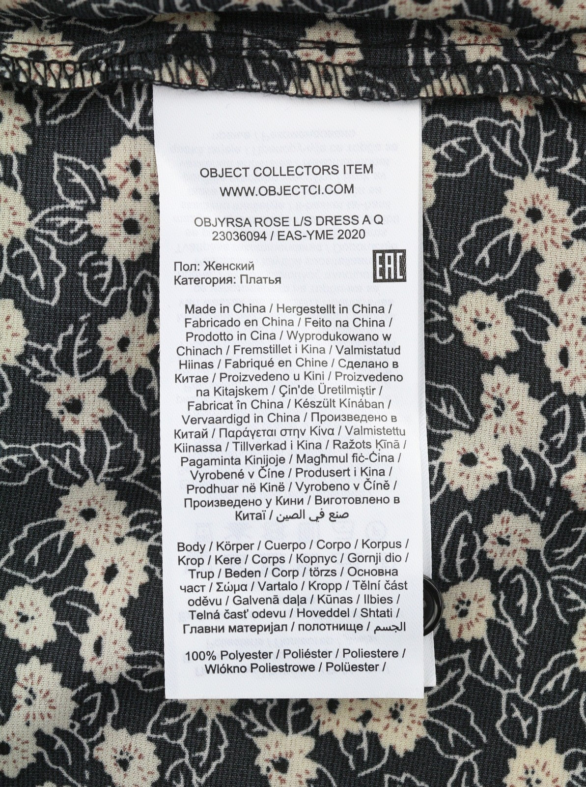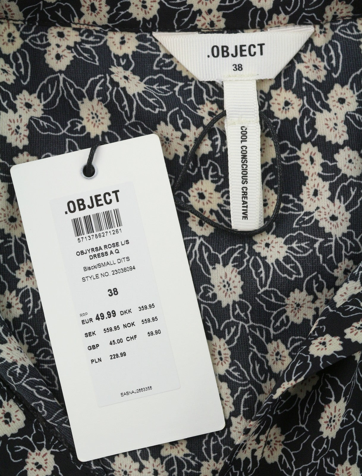 OBJECT Jyrsa Rose L/S Women Dress 38 M Black Floral Print Oversized Long Sleeve