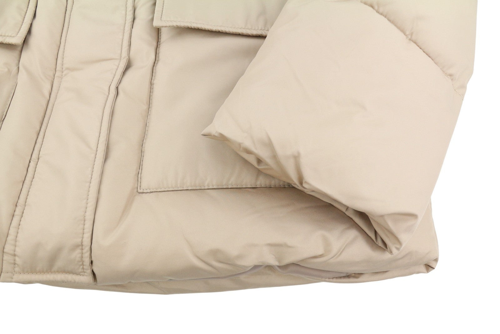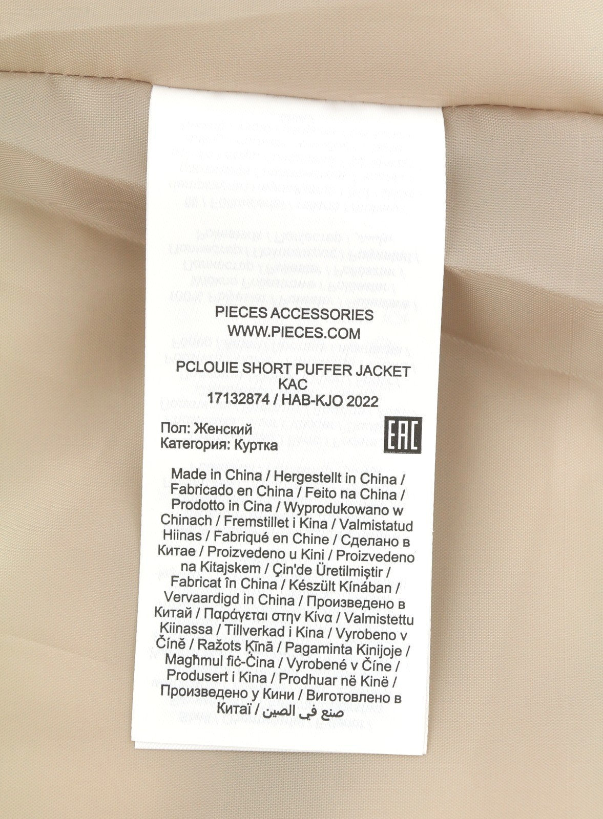 PIECES Louie Short Puffer Women Jacket XS Silver Mink Padded Quilted Hooded Zip