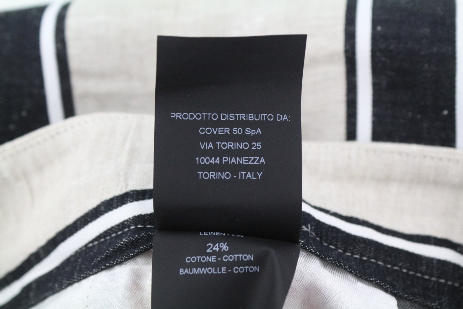 PT TORINO Ambra Women's Trousers 42 W30 Linen Blend Pinstripe Turn-Up Style
