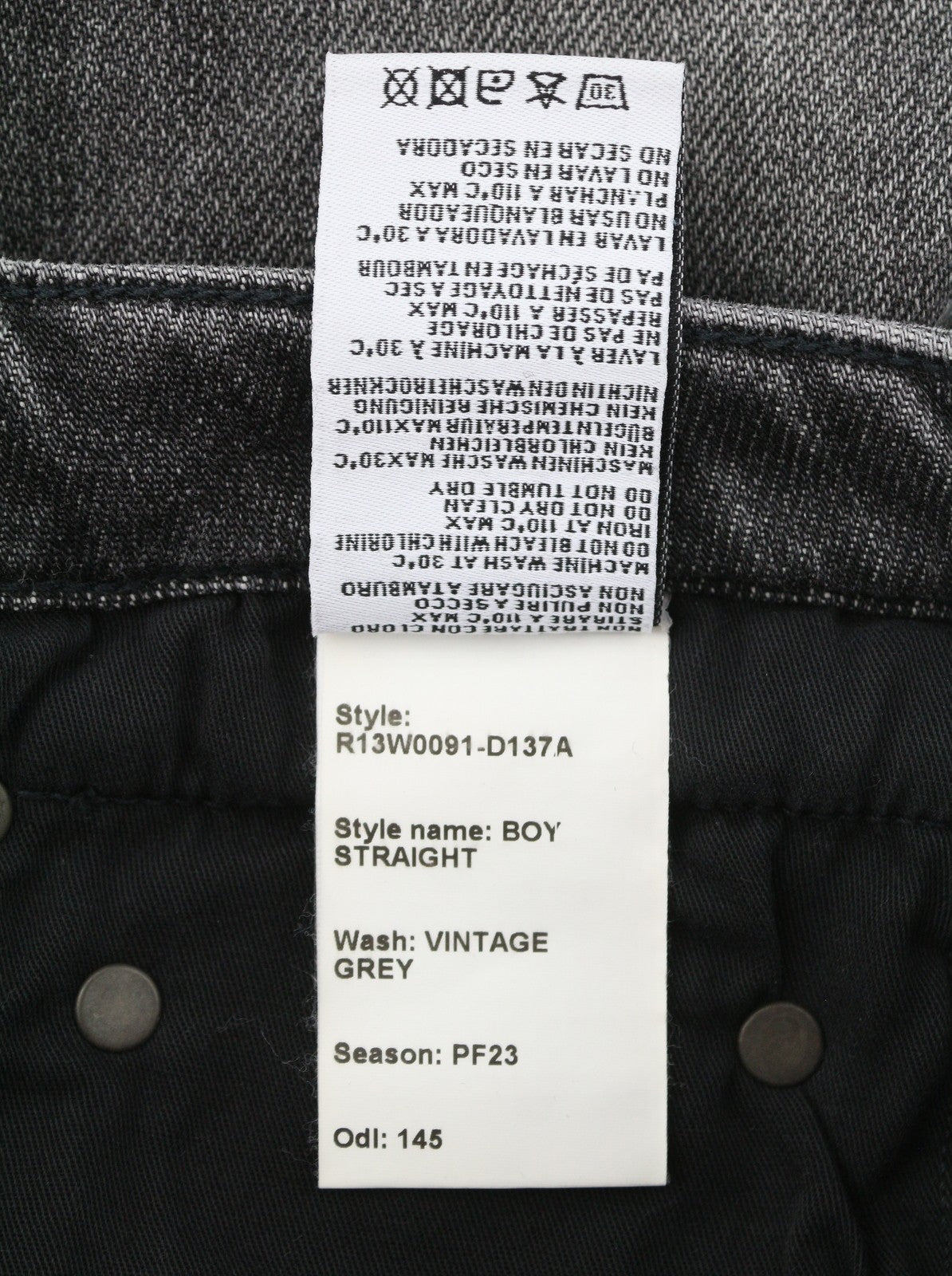 R13 Boy Straight Women Jeans 24 Vintage Grey Faded Whiskers Cropped Ankle Zip