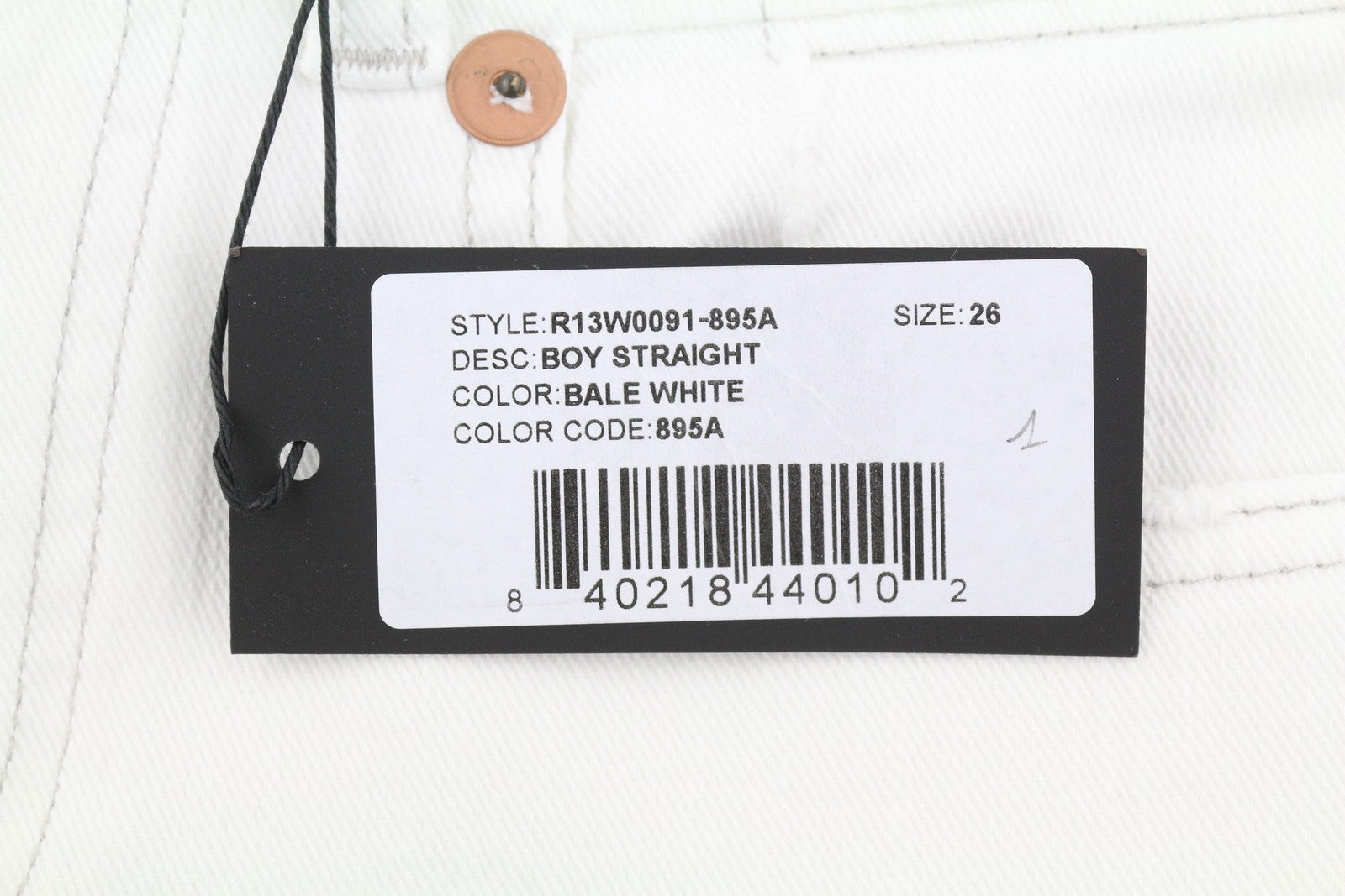 R13 Boy Straight Women Jeans 26 Bale White Cropped Ankle Zip Fly PS25 RRP499