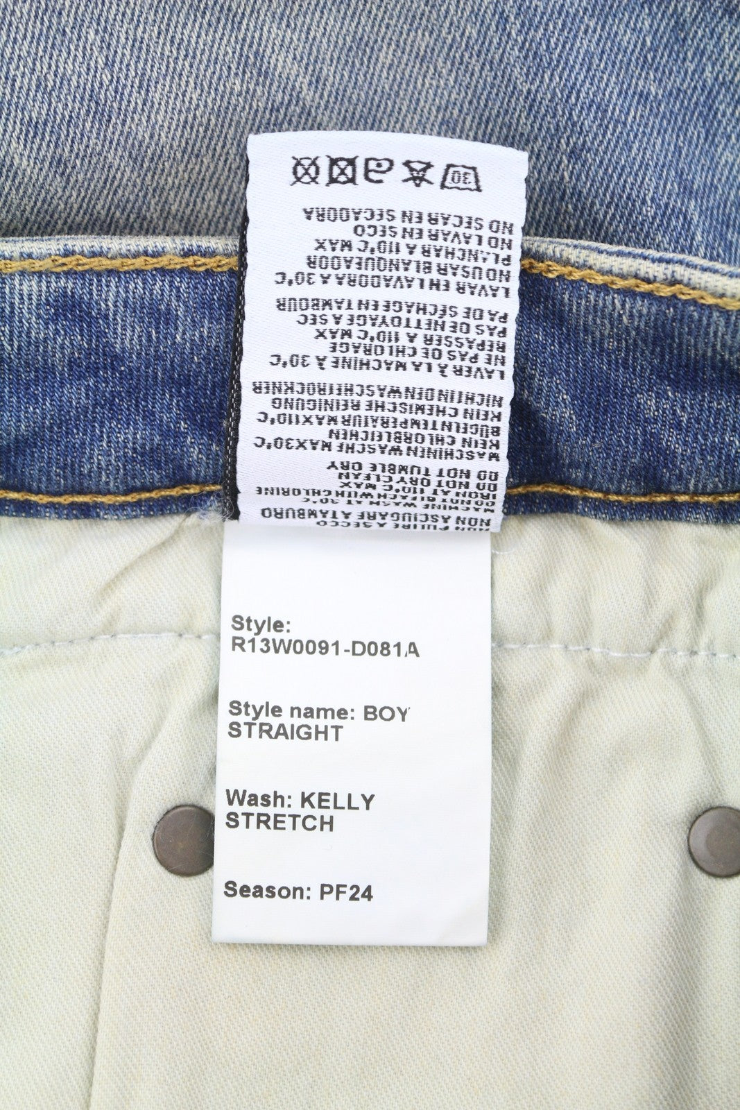 R13 Boy Straight Women Jeans 28 Kelly Stretch Cropped Zip Fly Faded Blue RRP699