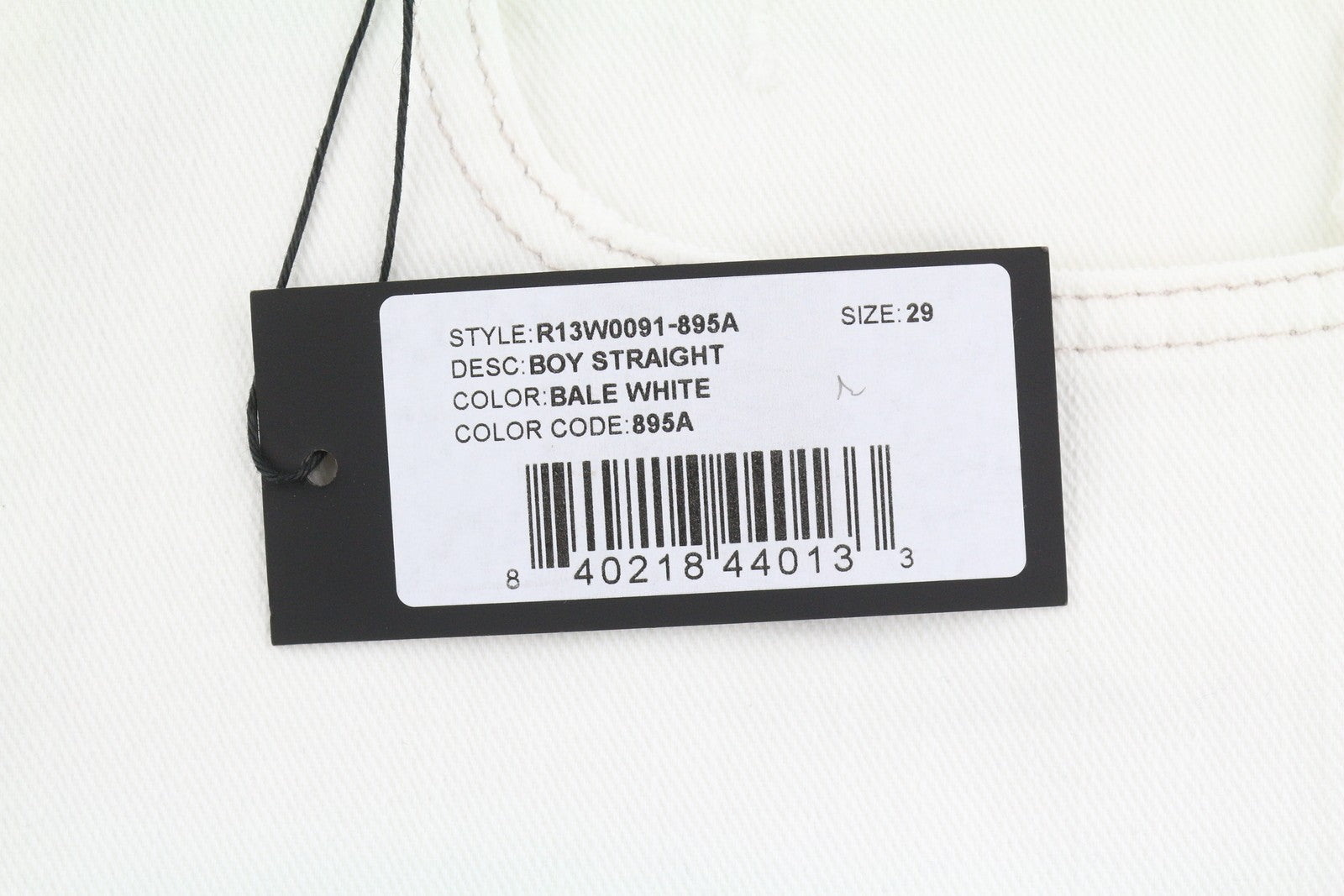 R13 Boy Straight Women Jeans 29 Bale White Cropped Ankle Zip Fly PS25 RRP499