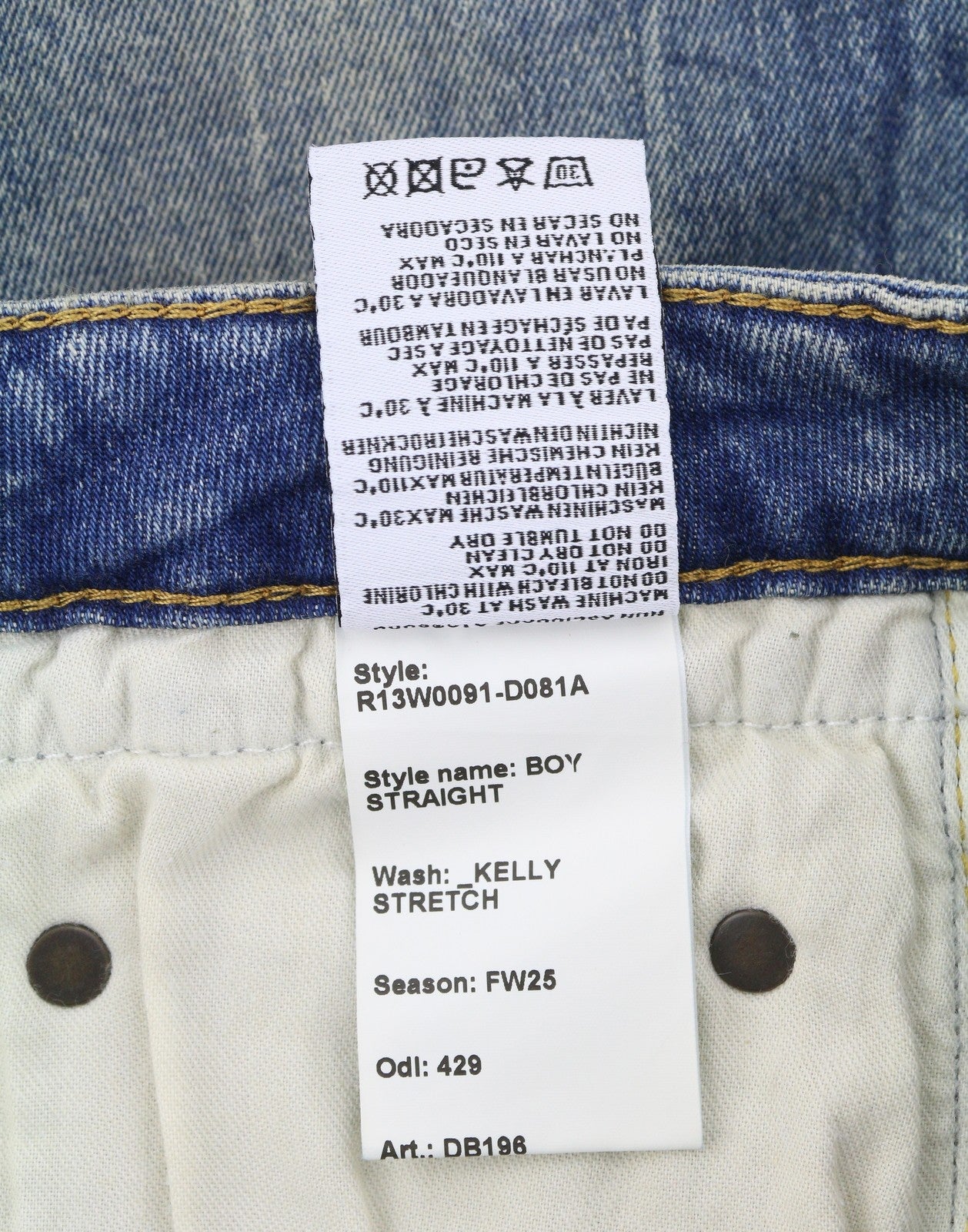 R13 Boy Straight Women Jeans 29 Kelly Stretch Cropped Faded Blue FW25 RRP699